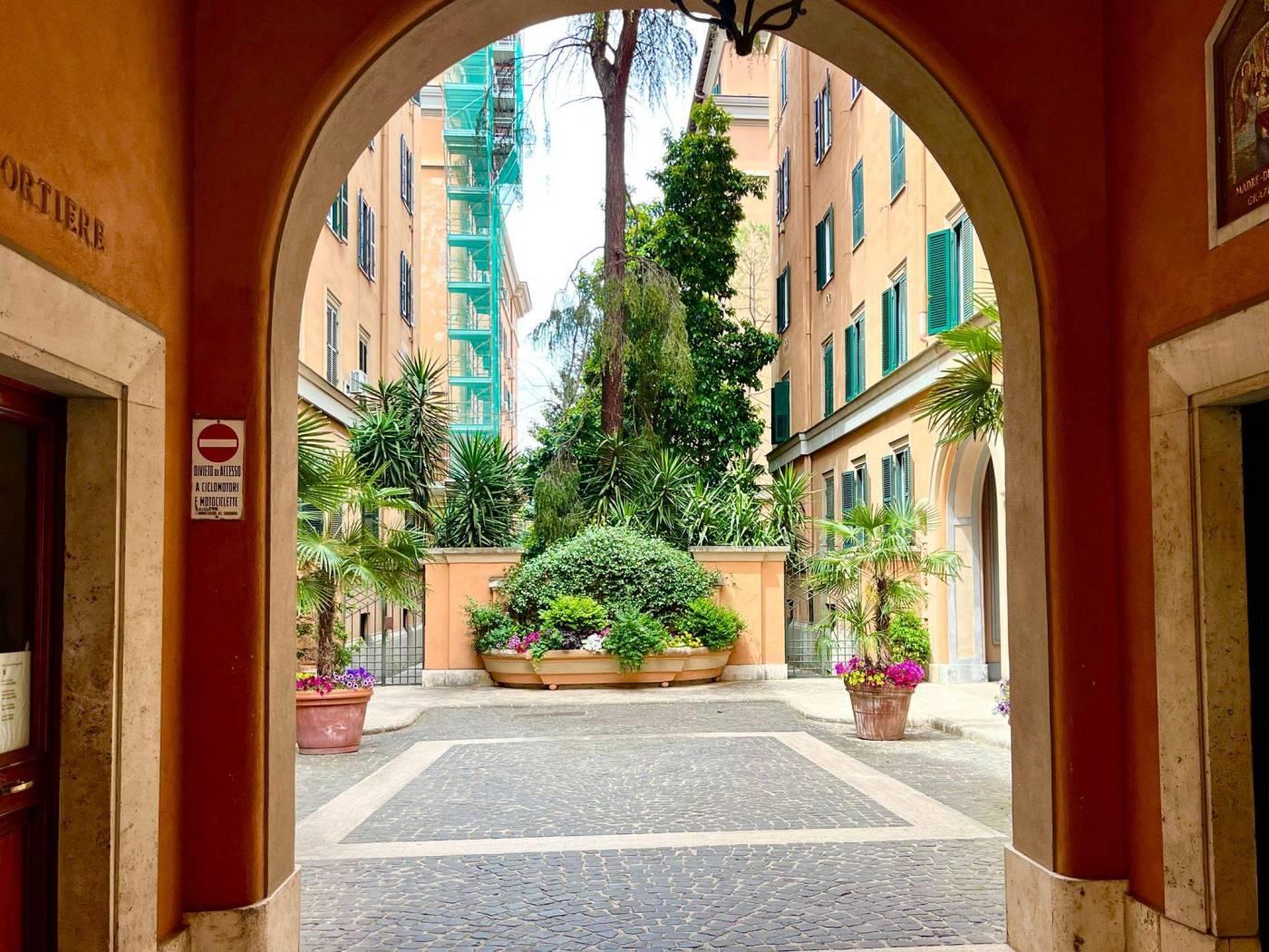 Il contesto condominiale si distingue per un raffinato cortile d’ingresso con fontana, ampi giardini interni perfettamente mantenuti, area dedicata al parcheggio biciclette e servizio di portineria attivo per l’intera giornata.