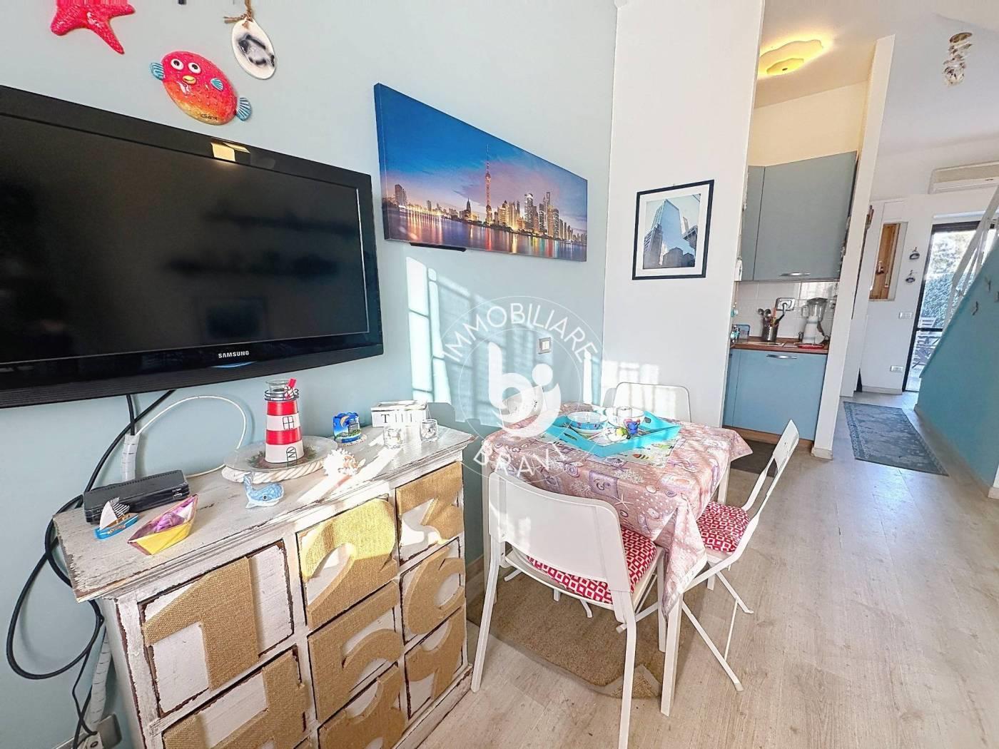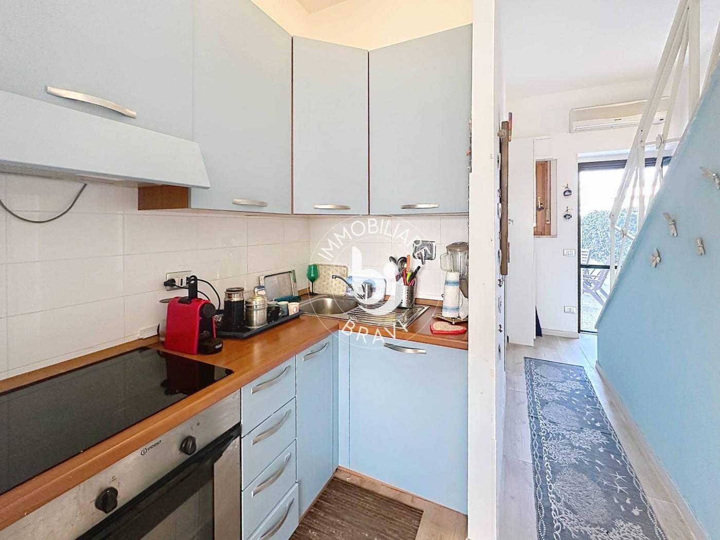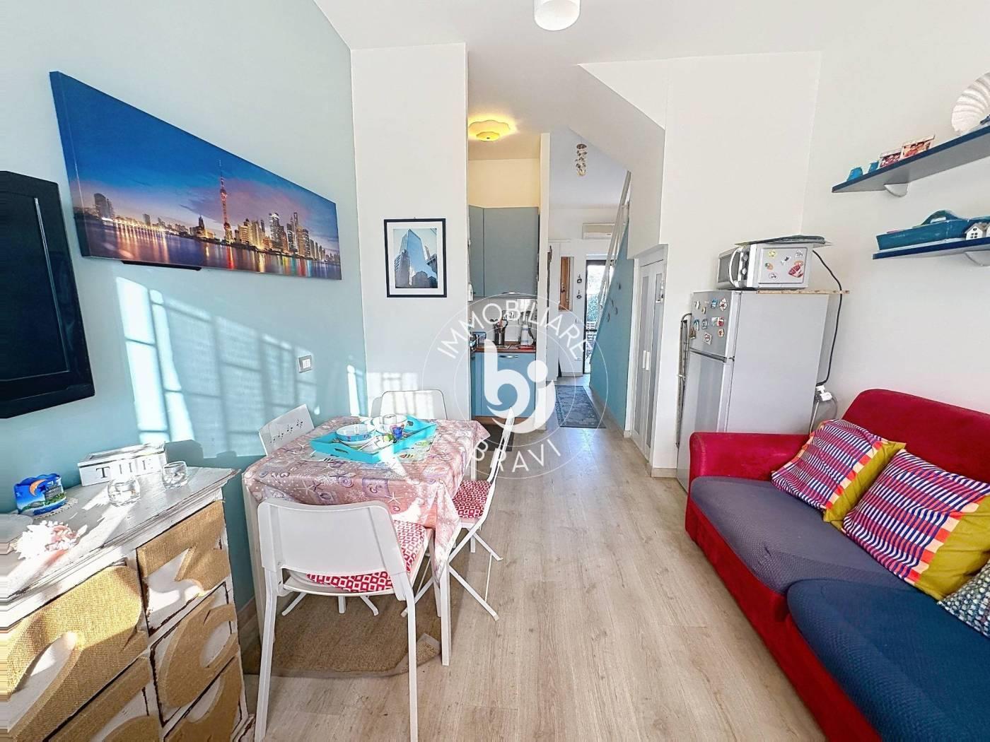 Immobiliare Bravi propone in vendita a Santa Severa un grazioso appartamento, all’interno di un residence esclusivo e curato, con ingresso indipendente e giardino privato attrezzato di circa 12 mq, ideale per vivere momenti di relax all’aperto. L’immobile ha una superficie di circa 50 mq ed è disposto su due livelli. Al primo livello si trova l’ingresso che conduce a un piccolo e accogliente soggiorno con angolo cottura e a un bagno. Al secondo livello è presente una soffitta con altezza massima di 2,40 metri, suddivisa in due locali che offrono spazi versatili da utilizzare come zona notte o studio. L’appartamento è climatizzato, dotato di portone blindato e si presenta ristrutturato, pronto per essere abitato. Viene venduto parzialmente arredato e dispone inoltre di posto auto assegnato e posto bici. Il residence offre servizi esclusivi tra cui portiere, piscina condominiale, campi da calcetto, campo da tennis e ampio parco condominiale, rendendo la soluzione perfetta sia come casa vacanze sia come investimento.
