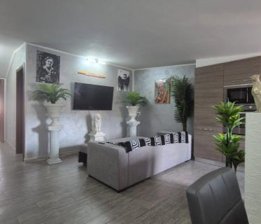 L'immobile è composto di cucina abitabile, ampio salone, due camere matrimoniali e bagno finestrato con vasca. Dalla cucina si accede ad un balconcino, mentre dalle camere da letto e dal salone si accede ad un balcone perimetrale da cui si può ammirare una bellissima vista panoramica.