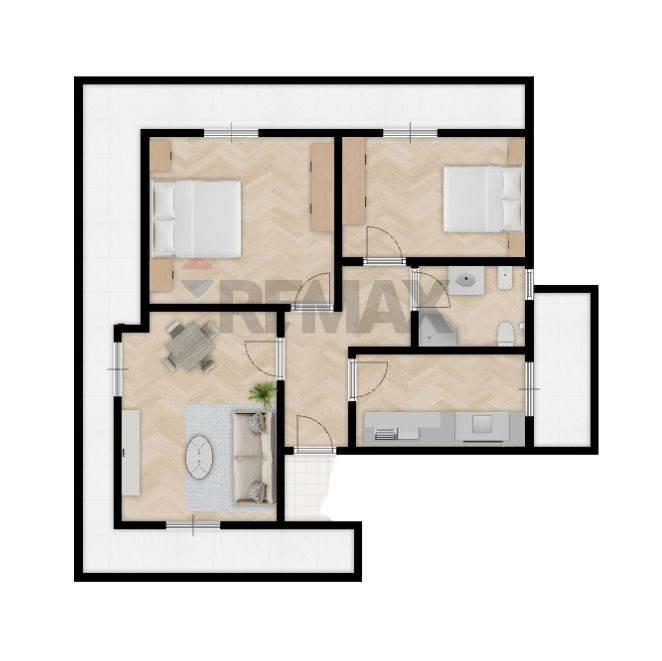 L'ampia metratura permette anche la realizzazione di una terza camera o di un secondo bagno.
