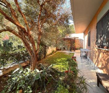 L'abitazione si trova all'interno di un piccolo comprensorio, distante dalla strada in un contesto molto silenzioso e panoramico costituito da abitazioni semi-indipendenti. Internamente è composta da un soggiorno con angolo cottura, un corridoio molto comodo con due armadi a muro, una camera matrimoniale, una cameretta, un servizio con vasca e doccia, un balcone e un eccezionale giardino pavimentato di 40 mq.