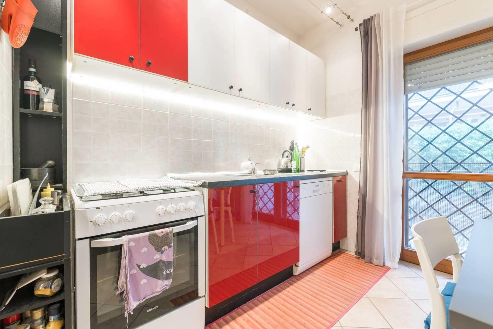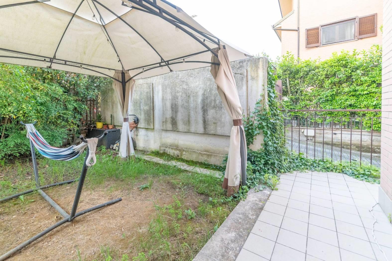 Tutti gli ambienti principali godono di grande luminosità, grazie alle porte finestre dalle quali si accede allo spazio esterno composto da un balcone vivibile collegato al giardino privato. A completare la proprietà troviamo un posto auto scoperto antistante lo stabile.