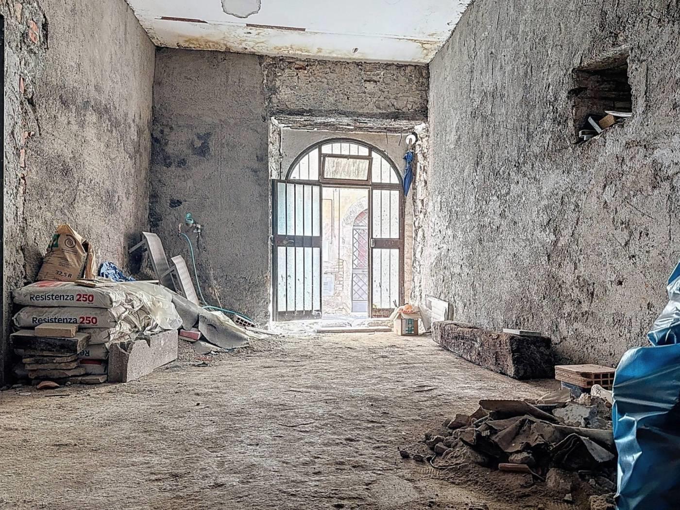 Una possibile divisione potrebbe essere un salone con camino e cucina a vista, tre camere da letto, due bagni, ripostiglio e studio. L'edificio ha subito una ristrutturazione strutturale, e sono stati realizzati un tetto nuovo, i solai e i rinforzi sulle aperture portanti, mentre internamente sono state fatte tutte le opere di demolizione, la casa si trova allo stato grezzo e attualmente è composta da 6 ampi vani con travi a vista. Le possibilità sono molteplici, si presta per essere utilizzato come un'unica residenza al centro della cittadina, oppure divisa in due palazzetti cielo terra ed ancora, per chi volesse sfruttare la struttura come investimento, suddivisa in 4 appartamenti, due bi-locali e due mono-locali. Il quartiere è interessante, si trova accanto la palazzo Orsini e vicino ai giardini del Cigno, dall'immobile si raggiungono tutti i punti chiave della cittadina, oltre alle scuole e ai collegamenti per la stazione e con Roma. Ape "G"