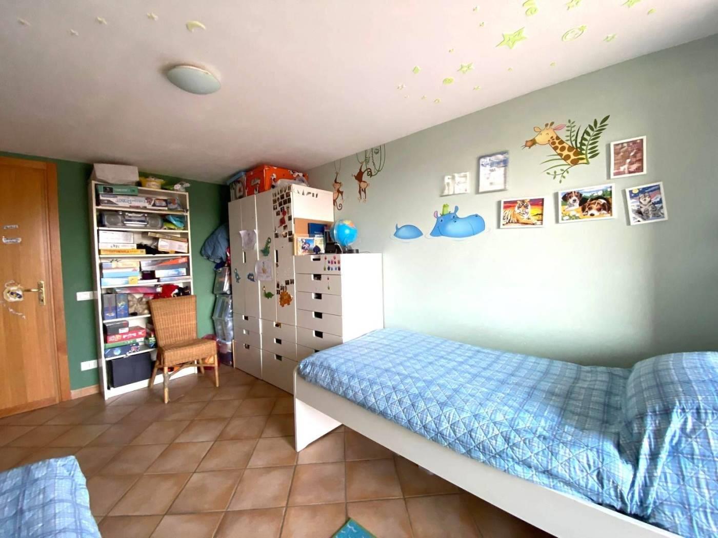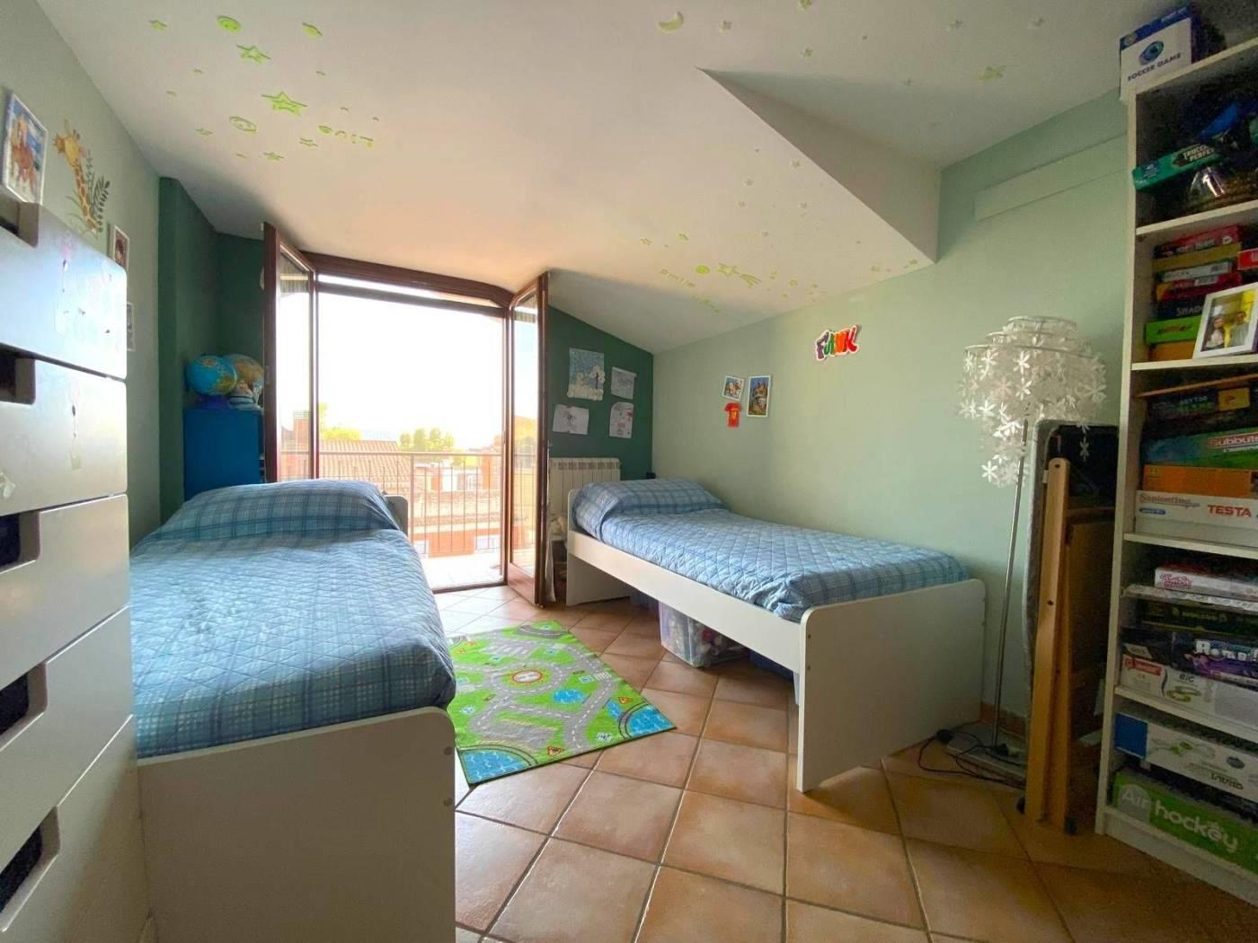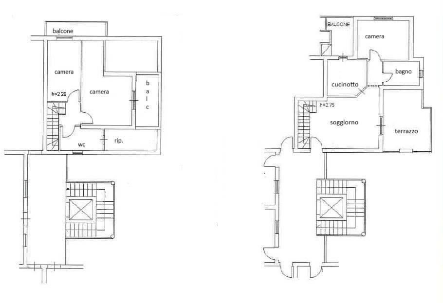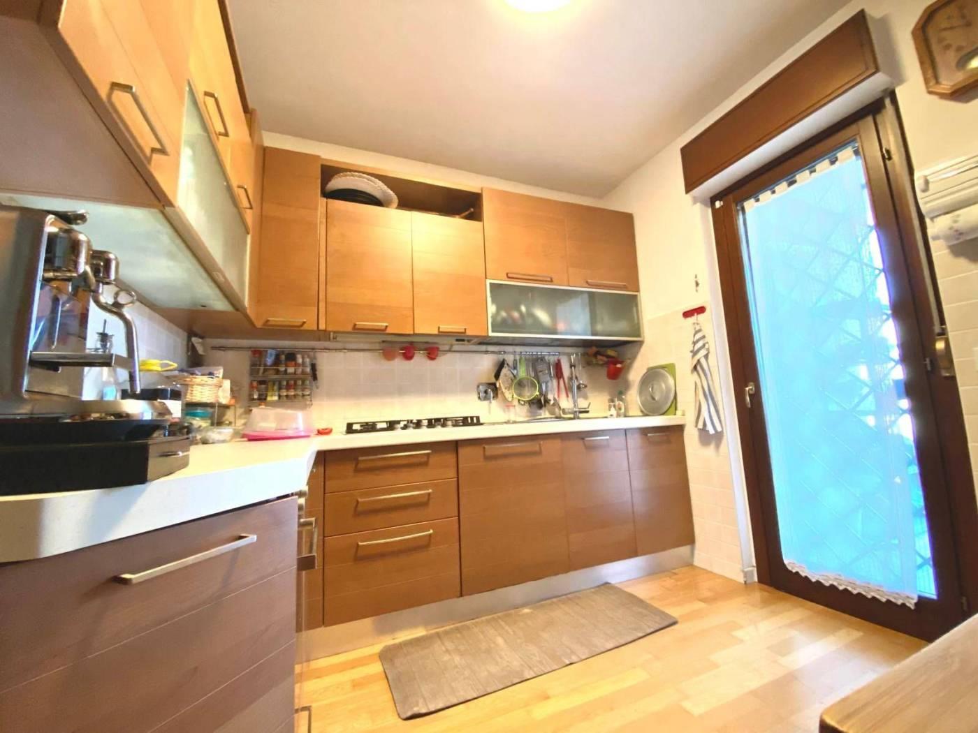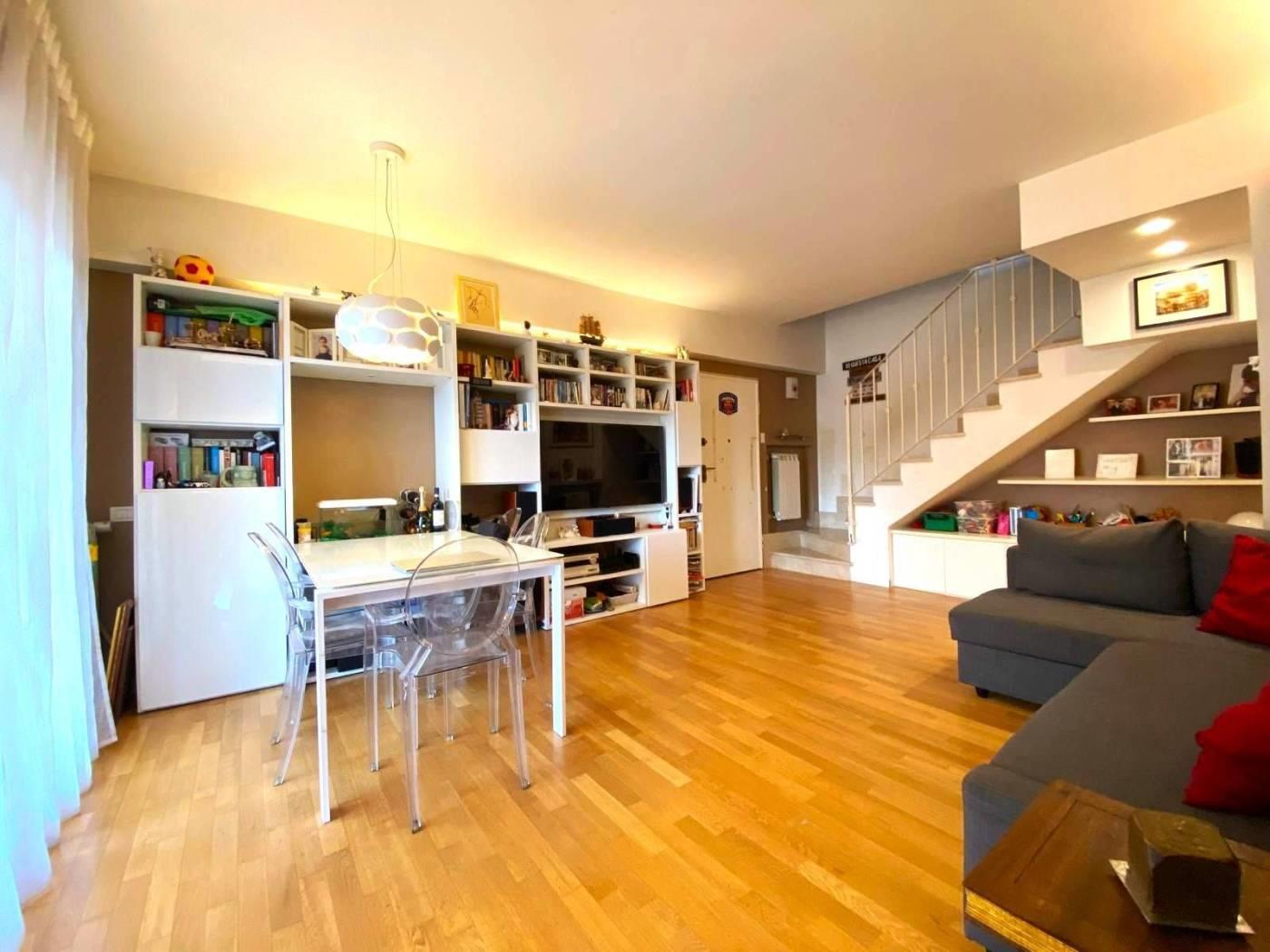 L'immobile si sviluppa su due livelli, situati al terzo e quarto piano di una palazzina in cortina di recente costruzione, dotata di ascensore. Il primo livello comprende un soggiorno con accesso a un terrazzo abitabile, un cucinotto con balcone di servizio, una camera matrimoniale e un bagno. Al livello superiore sono presenti due ulteriori camere matrimoniali, un secondo bagno e due balconi.