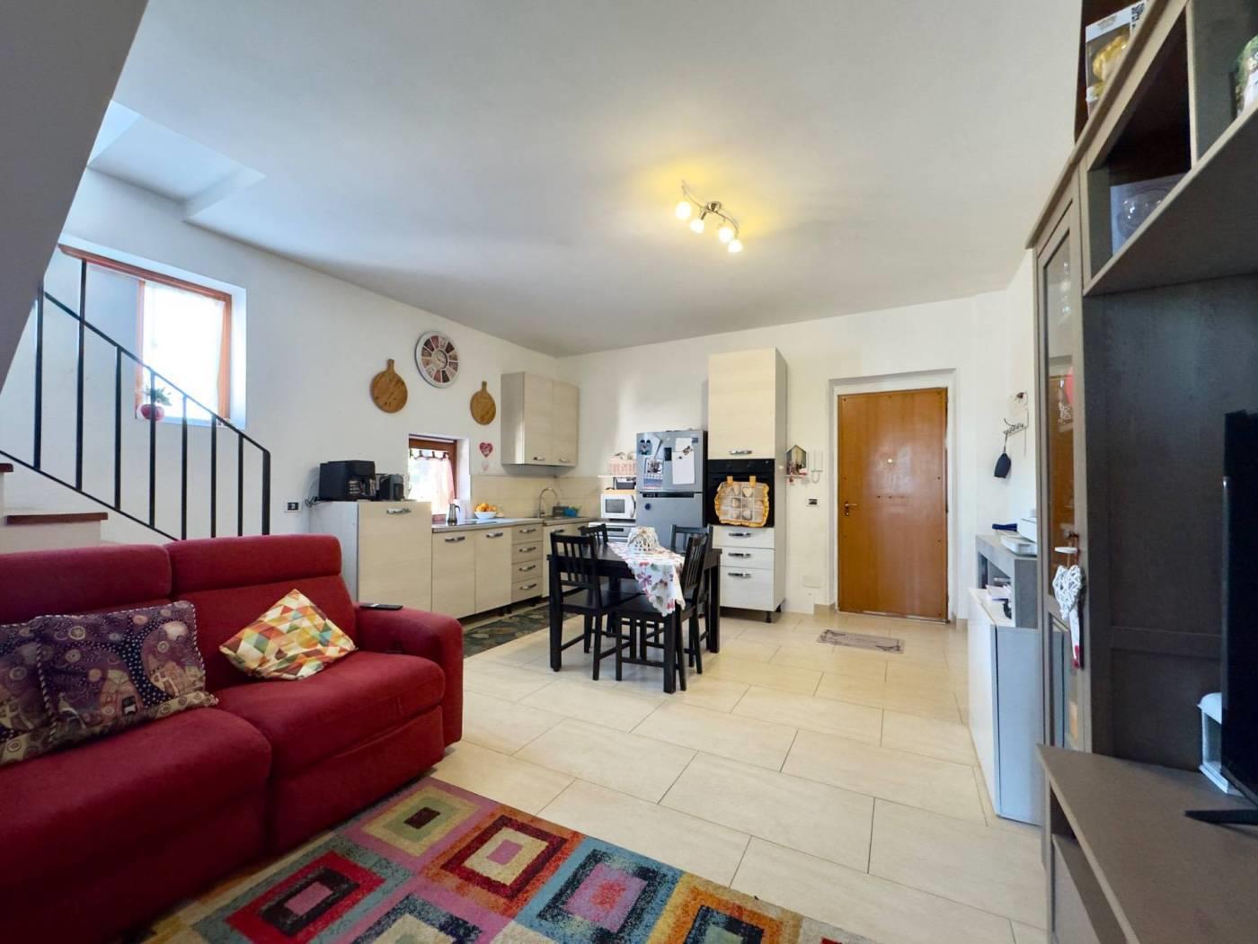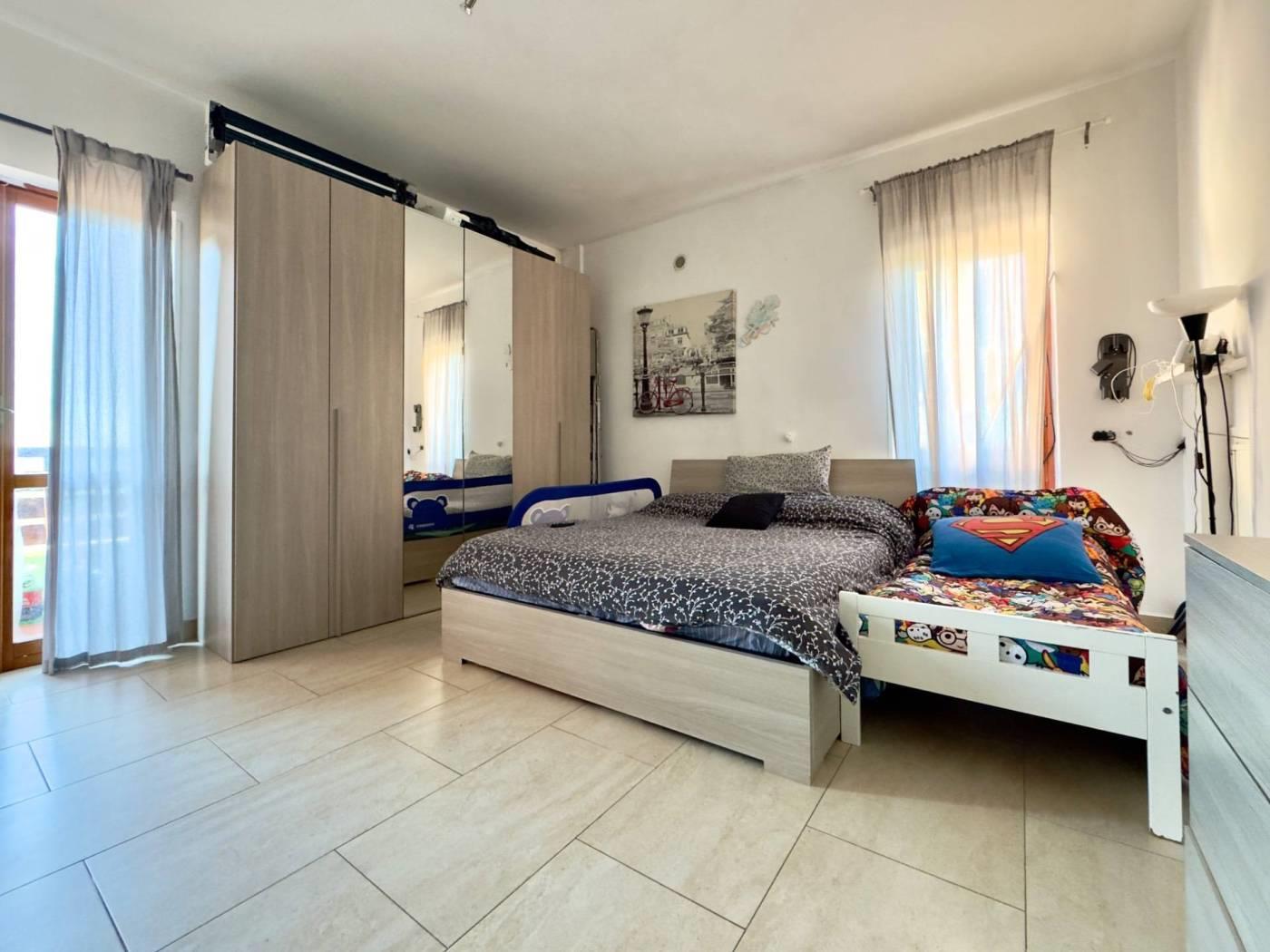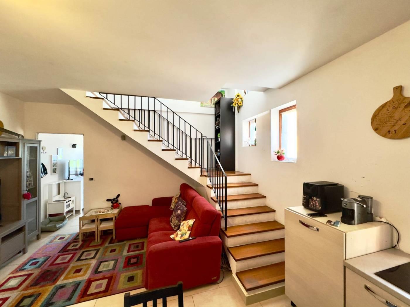 L'appartamento, sviluppato su una superficie complessiva di 100 mq distribuiti su due livelli, presenta al piano terra un ampio salone con cucina a vista e una camera matrimoniale dotata di accesso diretto al balcone panoramico. Una comoda scala interna conduce al piano superiore, dove si trovano una seconda camera di dimensioni matrimoniali, una cameretta con uscita sul secondo balcone e un bagno finestrato completo di doccia.