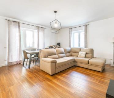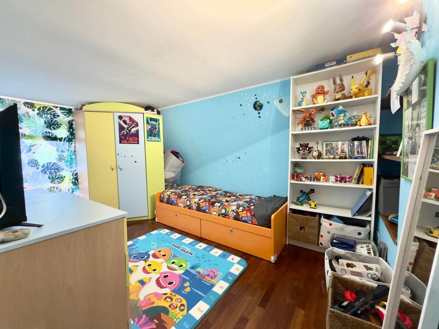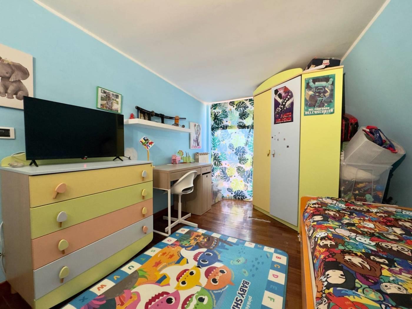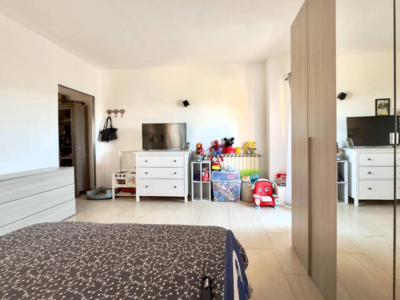 L'appartamento, sviluppato su una superficie complessiva di 100 mq distribuiti su due livelli, presenta al piano terra un ampio salone con cucina a vista e una camera matrimoniale dotata di accesso diretto al balcone panoramico. Una comoda scala interna conduce al piano superiore, dove si trovano una seconda camera di dimensioni matrimoniali, una cameretta con uscita sul secondo balcone e un bagno finestrato completo di doccia.