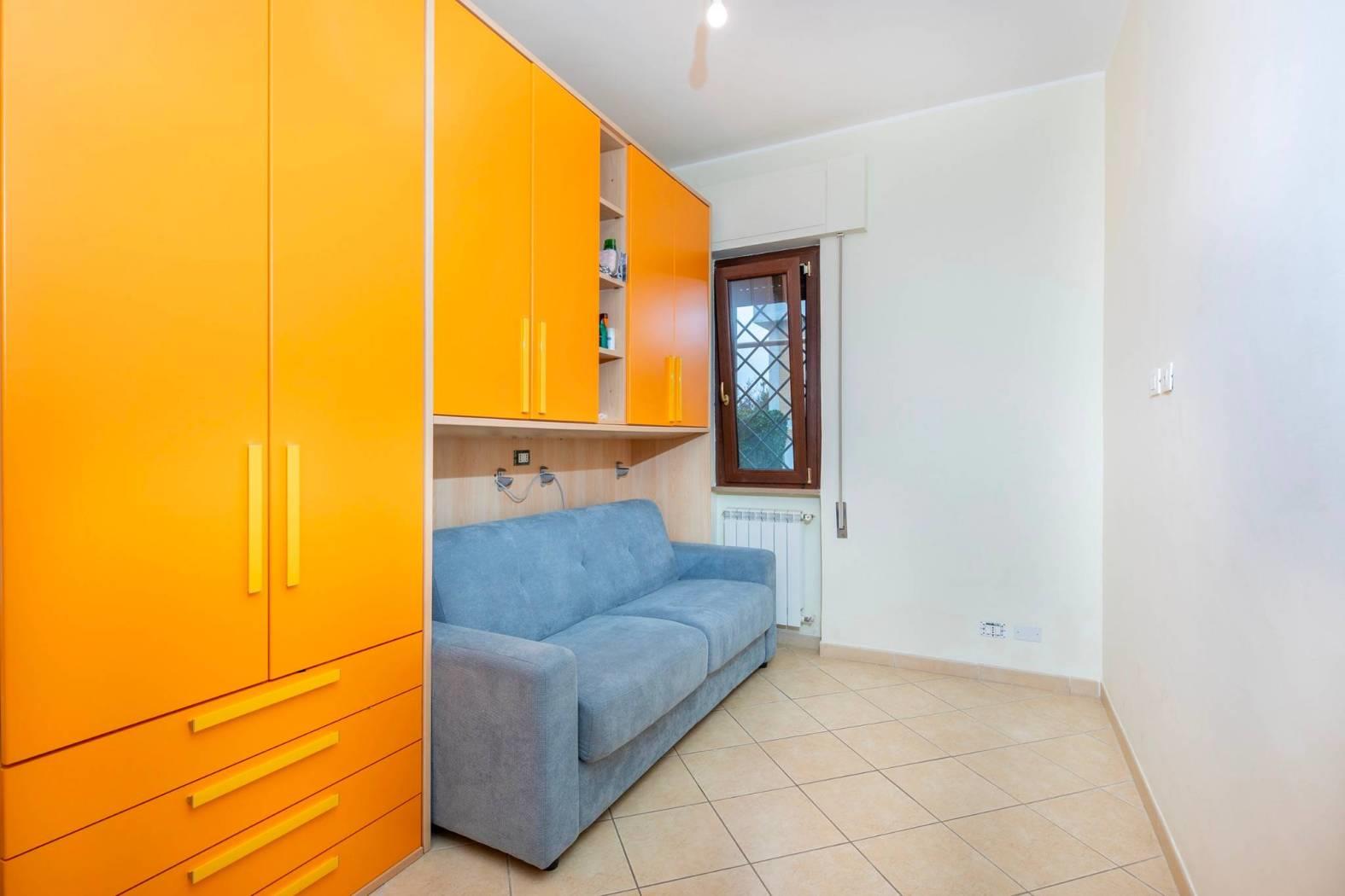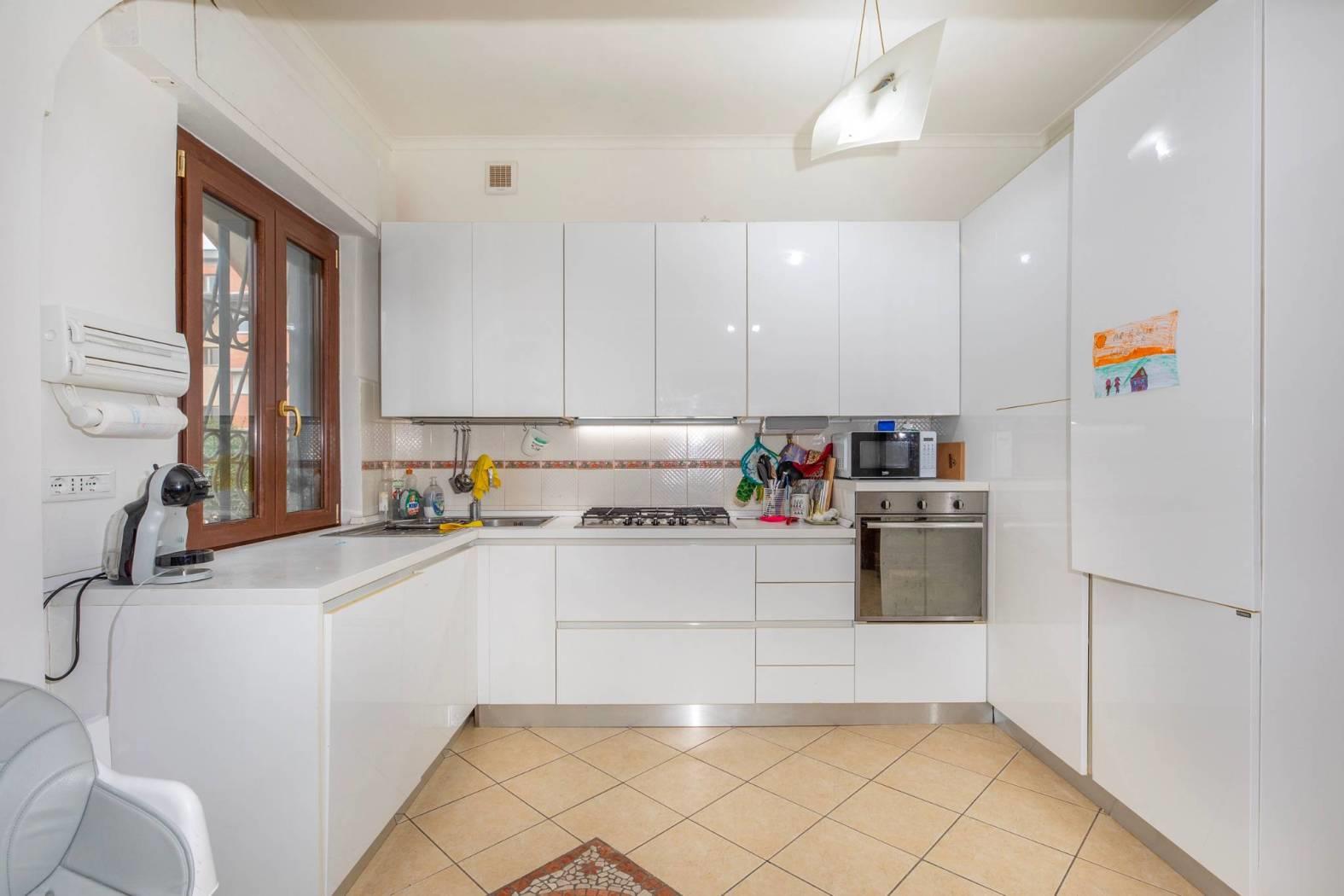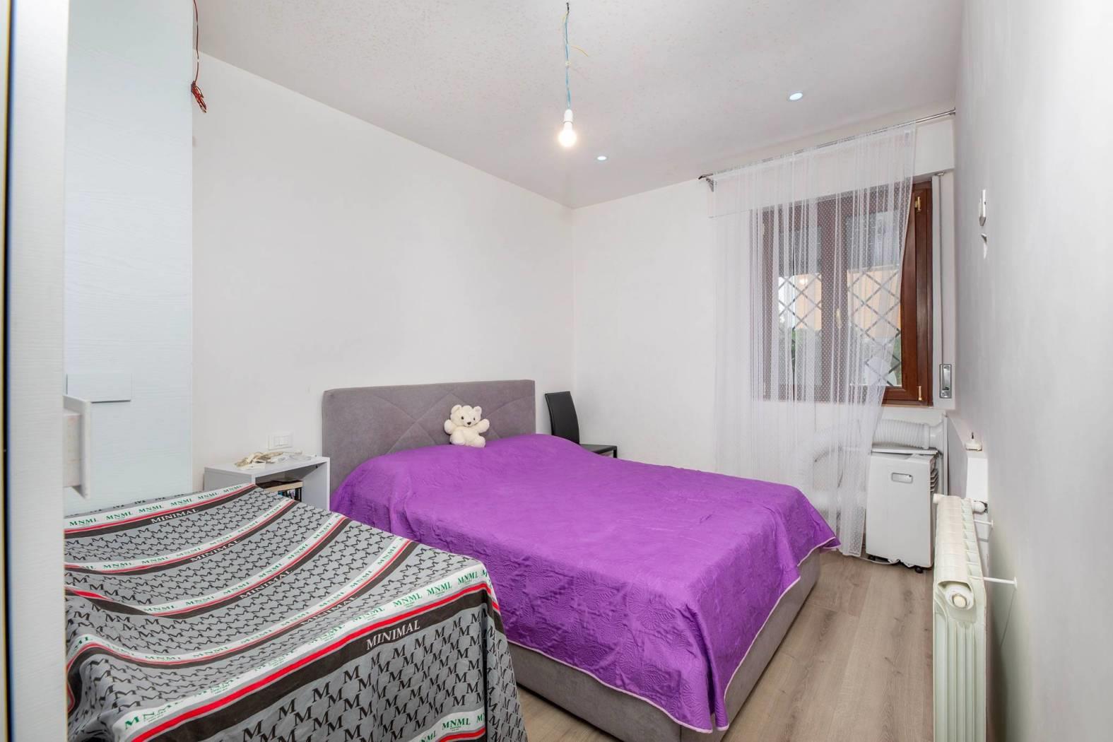 Il servizio è ben distribuito, l'ampio balcone di circa 10 mq e un giardino pavimentato di 100 mq completano l'offerta, offrendo spazi esterni ideali per rilassarsi o intrattenere. Completa la proprietà un comoda cantina utile per riporre oggetti ed utensili. La proprietà è dotata di posto auto coperto, rendendo la vita quotidiana ancora più comoda. L'orientamento a sud-est garantisce luminosità durante tutto il giorno, mentre il riscaldamento a pompa di calore e l'aria condizionata assicurano un comfort ottimale in ogni stagione.