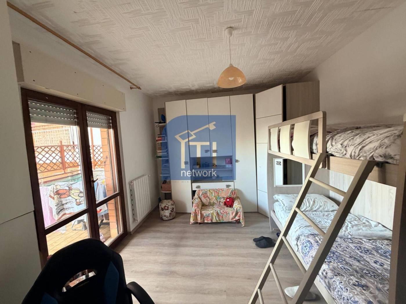 Pomezia, adiacente centro commerciale, appartamento secondo piano con ascensore con doppia esposizione, composto da salone con porta finestra sul terrazzo, cucina abitabile con porta finestra, camera con porta finestra che affaccia sul secondo terrazzo, servizio con doccia e finestra.