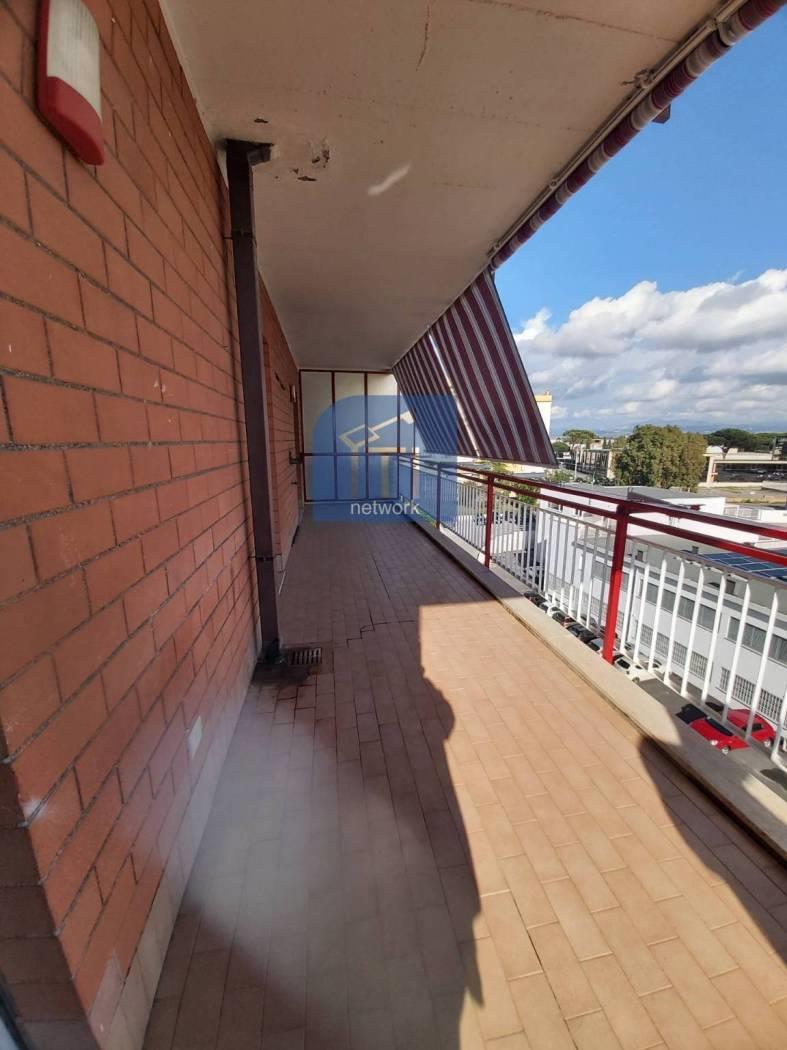 Pomezia, appartamento posto al quarto piano, con splendida vista sui Castelli romani e sul mare, composto da salone con accesso al terrazzo, cucinotto con balconcino finestrato, due camere da letto con porta finestra sul terrazzo, doppi servizi, di cui uno con vasca, entrambi con finestre, terrazzo perimetrale abitabile e box auto di proprietà.