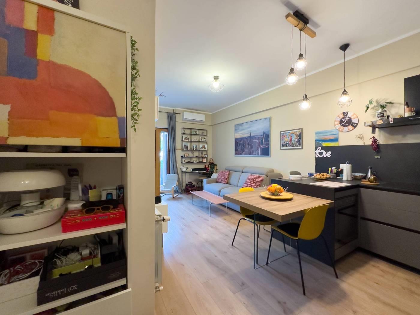 L'immobile è composto da un piccolo ingresso che conduce a un'ampia sala con angolo cottura, perfetta per accogliere amici e familiari. La camera da letto è accogliente e il bagno è funzionale. Non dimenticare il comodo balcone, ideale per goderti momenti di relax all'aperto. Inoltre, la cantina al piano sottostrada offre spazio extra per riporre oggetti.