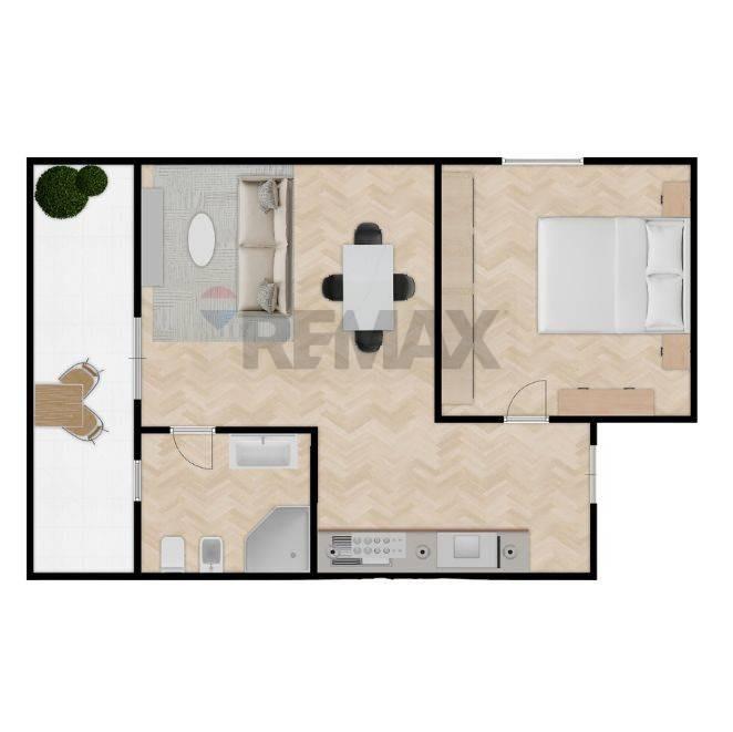 La soluzione è composta da ingresso, salone con angolo cottura, camera, bagno e giardino mattonato. Completa la proprietà un posto auto all'interno del condominio con cancello automatico.