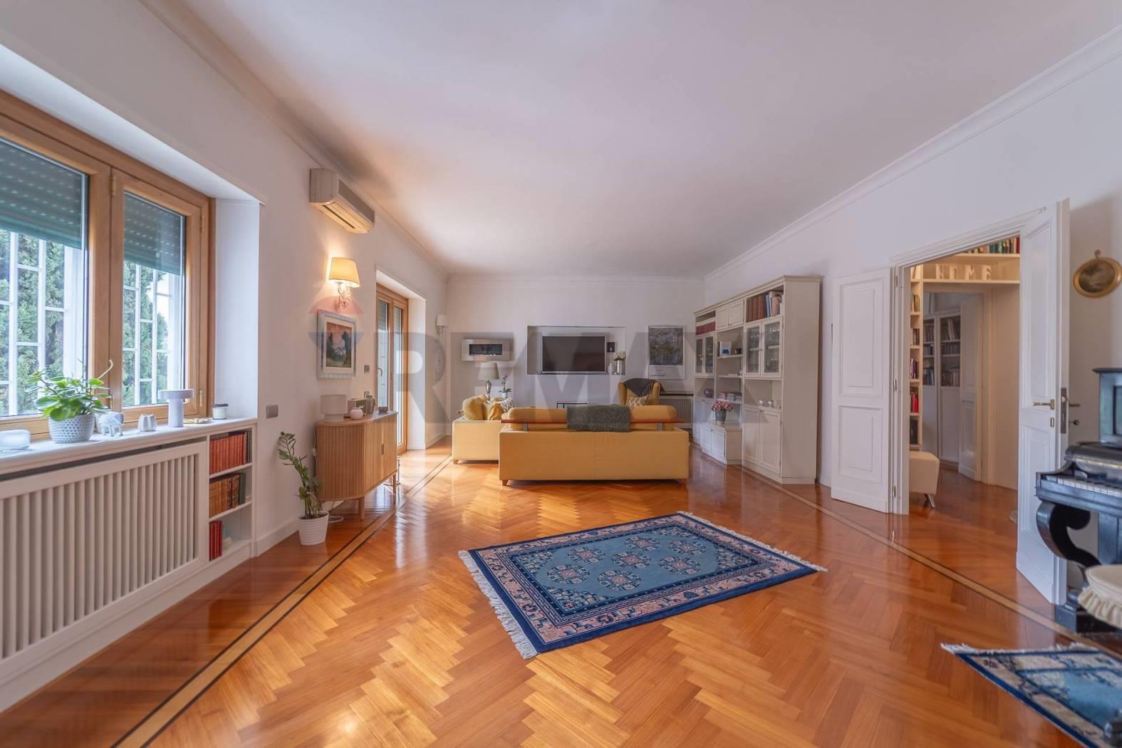 L'immobile è caratterizzato da un'altezza dei soffitti di tre metri che amplifica la percezione degli spazi e la luminosità di ogni ambiente. Completano questa esclusiva proposta una comoda cantina situata al piano seminterrato e un prezioso posto auto coperto, garantendo la massima comodità per il parcheggio in una zona così esclusiva. Questa residenza rappresenta una soluzione abitativa di alto livello, pronta per essere vissuta, dove l'eleganza classica si sposa con il comfort moderno nel cuore della Capitale.