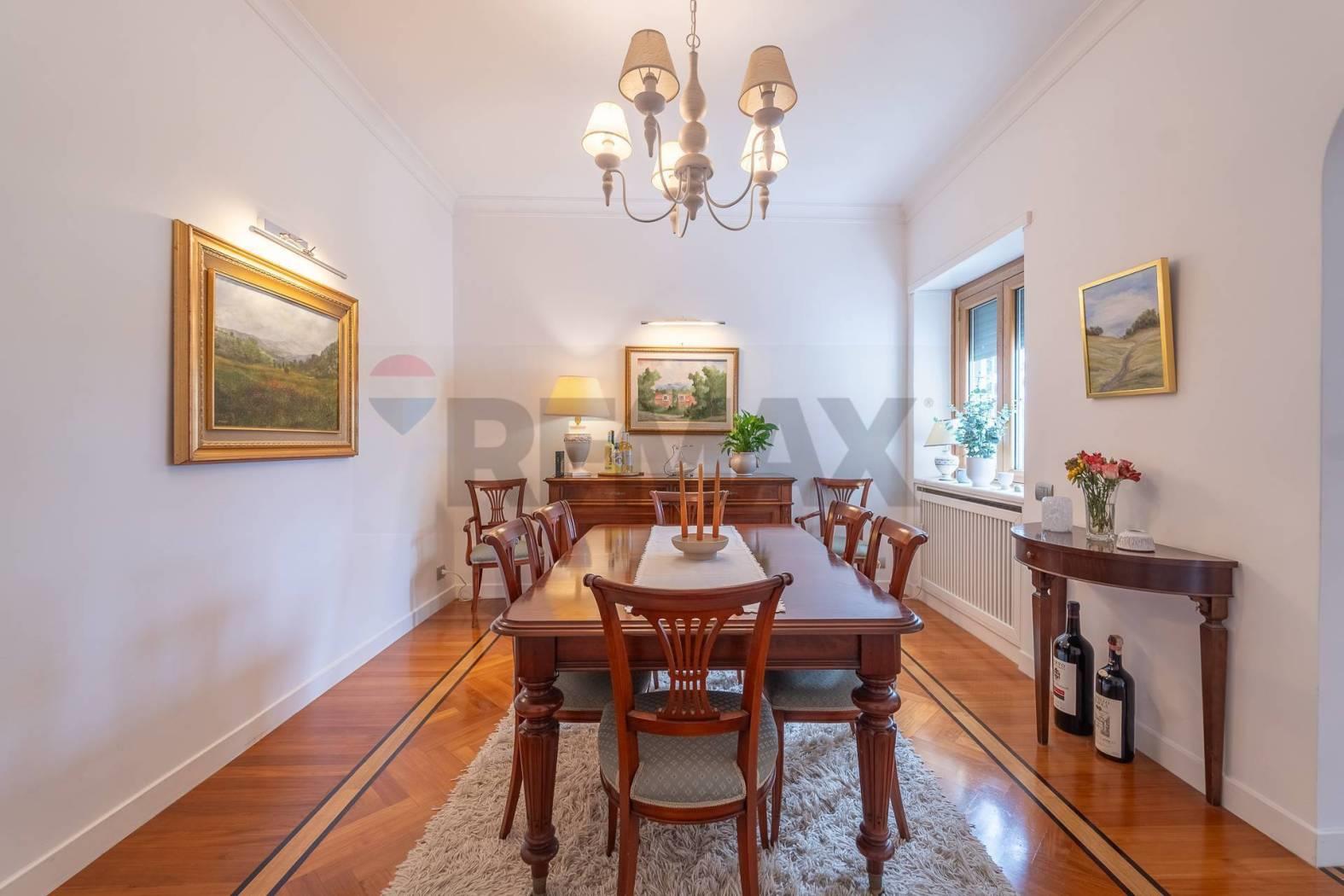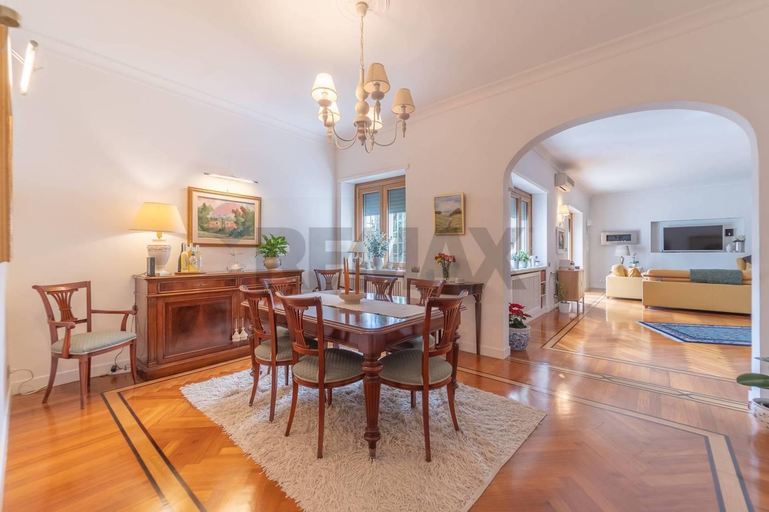 Ti presento un'opportunità abitativa straordinaria situata in una delle zone più ricercate di Roma, precisamente in Via della Mendola 28, all'interno di un contesto signorile e riservato. Questo splendido appartamento si trova al secondo piano di una palazzina elegante, caratterizzata da ampie balconate fiorite che ne definiscono l'estetica raffinata. Varcata la soglia dell'ingresso, si viene accolti da una zona giorno di rara bellezza dove il calore del parquet a spina di pesce e l'ampiezza degli spazi creano un'atmosfera di immediato prestigio. Il fulcro della casa è rappresentato da un magnifico salone doppio, inondato di luce naturale grazie alle grandi porte finestre che conducono al balcone principale, ideale per creare diverse zone conversazione e relax. Adiacente al salone e collegata armoniosamente attraverso eleganti aperture ad arco si trova la sala da pranzo dedicata, uno spazio formale e raffinato perfetto per ospitare cene conviviali in un ambiente distinto e accogliente.