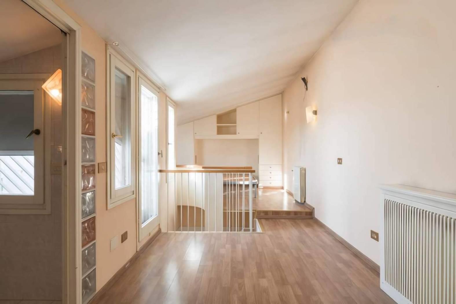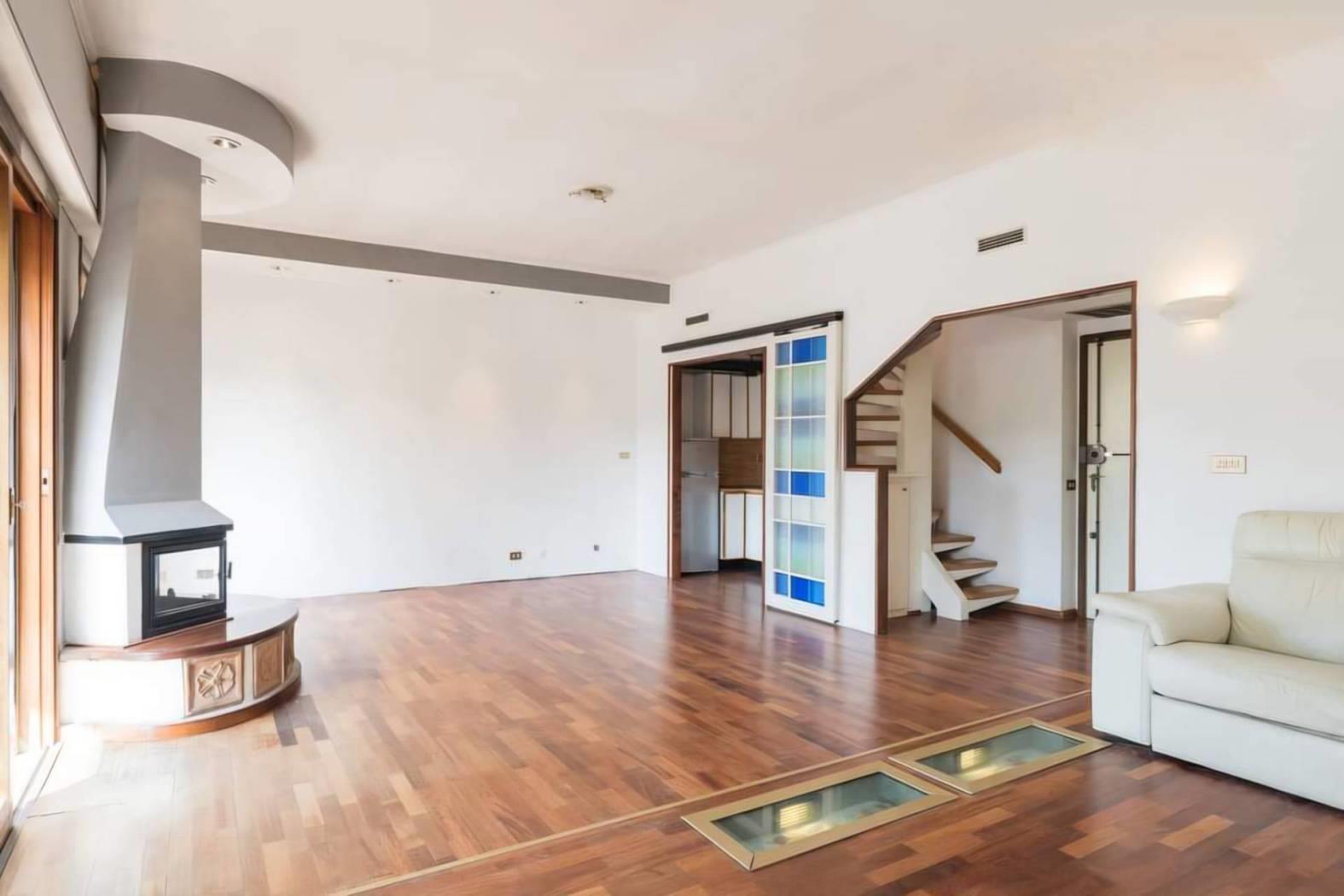 L'appartamento è così composto: al primo livello troviamo una salone con camino (originariamente nasceva come soggiorno e camera quindi ripristinatile all'occorrenza) un cucinotto, un comodo servizio ed un grande terrazzo (il più grande di quegli appartamenti). Al primo piano invece sono presenti una camera (l'ambiente potrebbe essere diviso in due camere più piccole data la posizione della scala che divide quasi naturalmente i due spazi), un servizio ed un balconcino. Completa la proprietà un posto auto coperto che può tranquillamente ospitare una autovettura ed un scooter. La casa attualmente è vuota e quindi disponibile da subito.