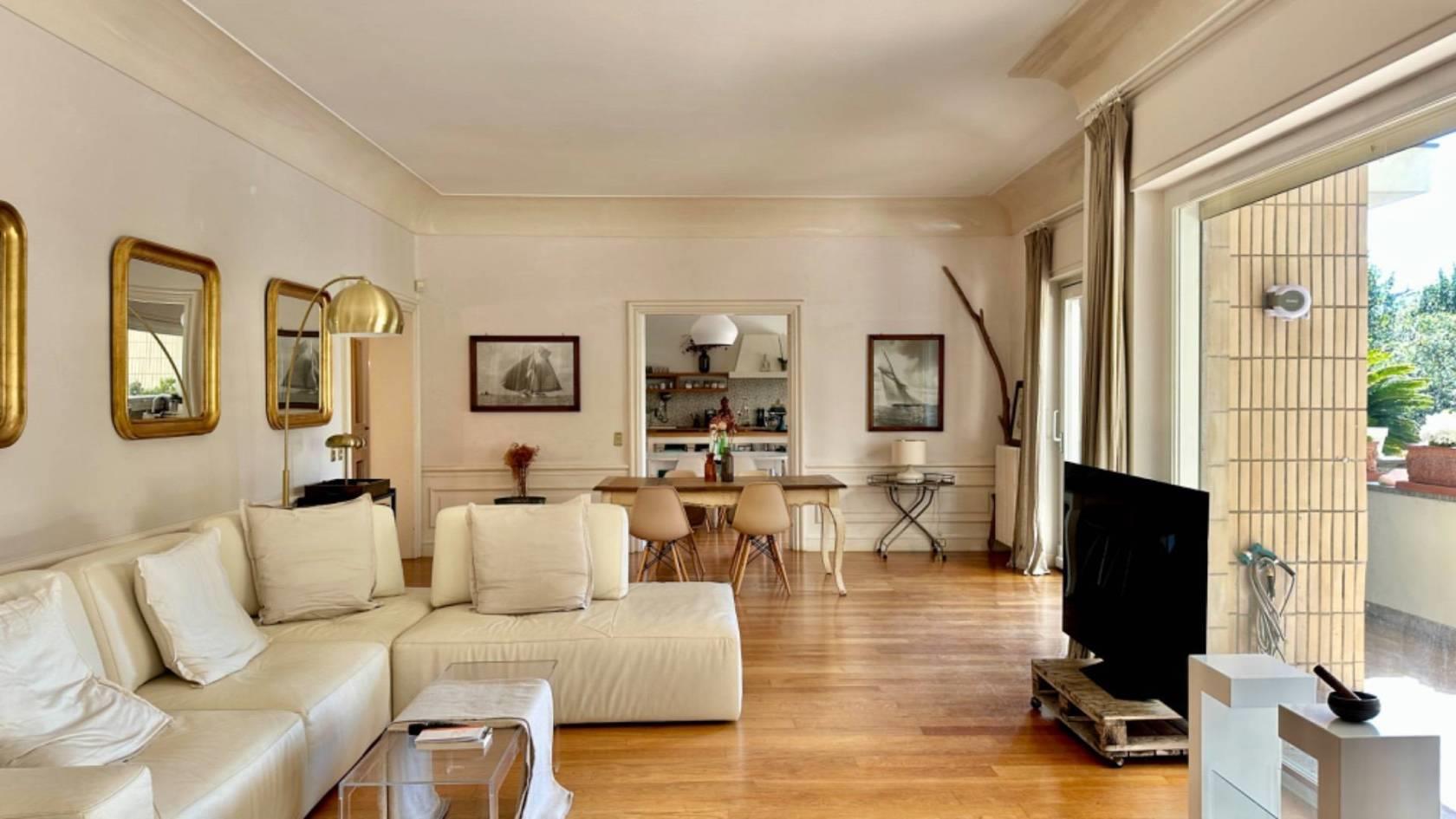 L'appartamento offre due grandi camere da letto matrimoniali e due bagni, entrambi ristrutturati; tuttavia, l'ampia metratura consente di riorganizzare gli spazi interni per creare una terza camera senza compromettere gli altri ambienti.