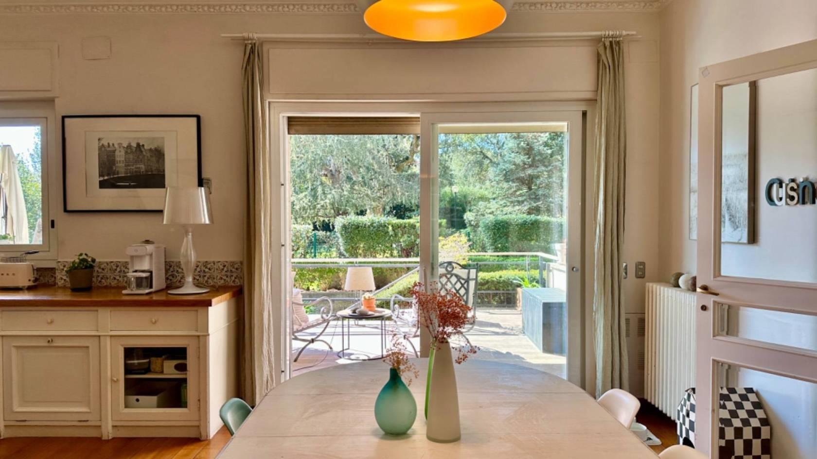 L'immobile si trova al piano terra di un edificio di quattro piani; l'ingresso dell'appartamento si apre su un disimpegno che conduce a un ampio salone triplo, illuminato da porte finestre che si affacciano sul patio e sul giardino.
