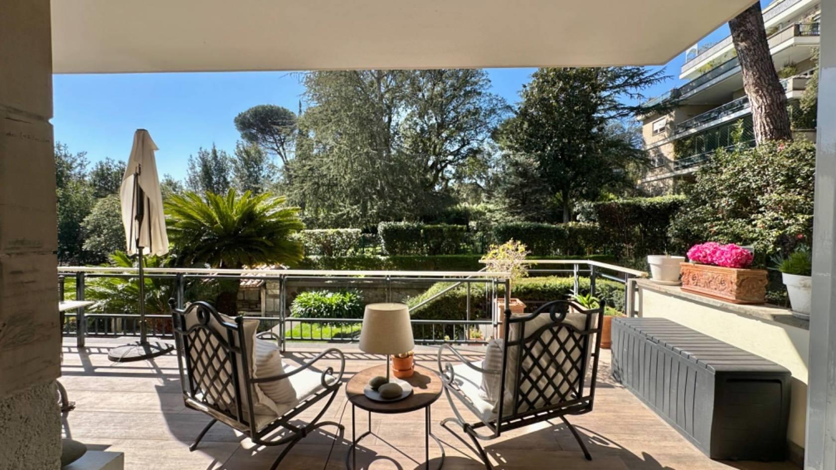 Coldwell Banker è lieta di presentare in esclusiva un magnifico appartamento con un giardino privato di 800 mq, situato all'interno di un tranquillo condominio in via Cortina D'Ampezzo, ben curato e mantenuto, con servizio di portineria attivo per garantire privacy e serenità.