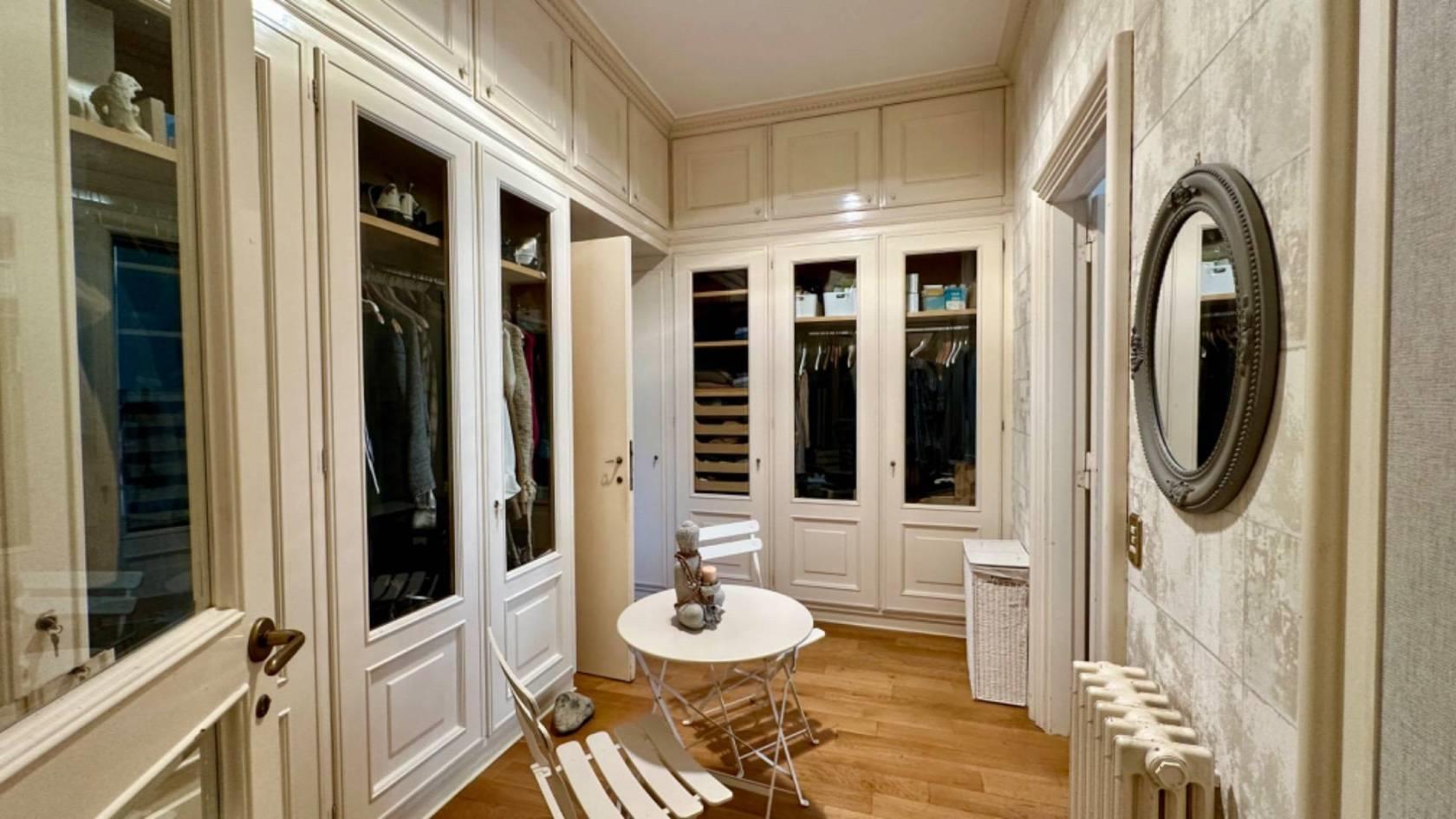 Un ampio corridoio con armadi su misura conduce alla zona notte e a un guardaroba ben arredato.