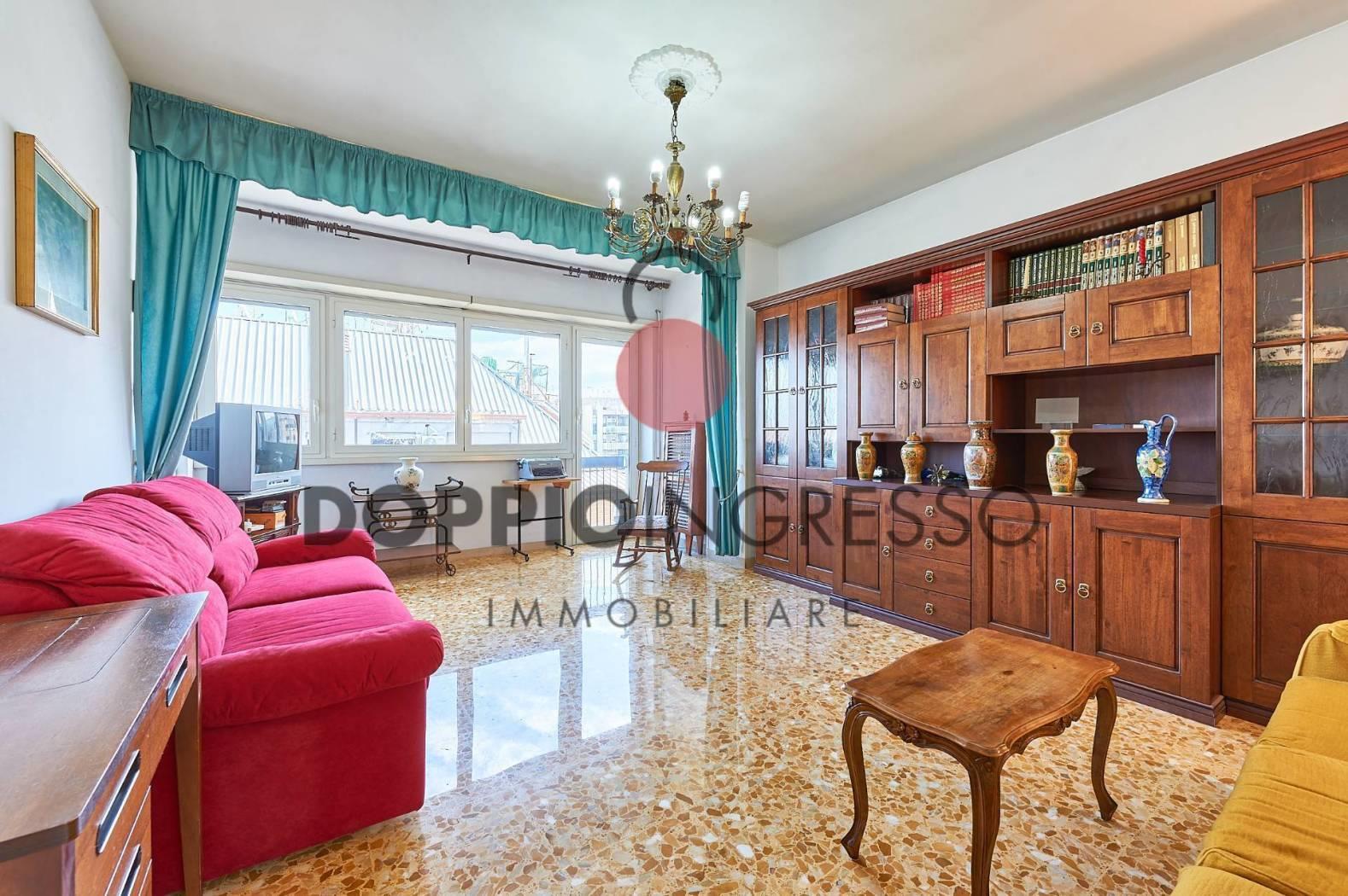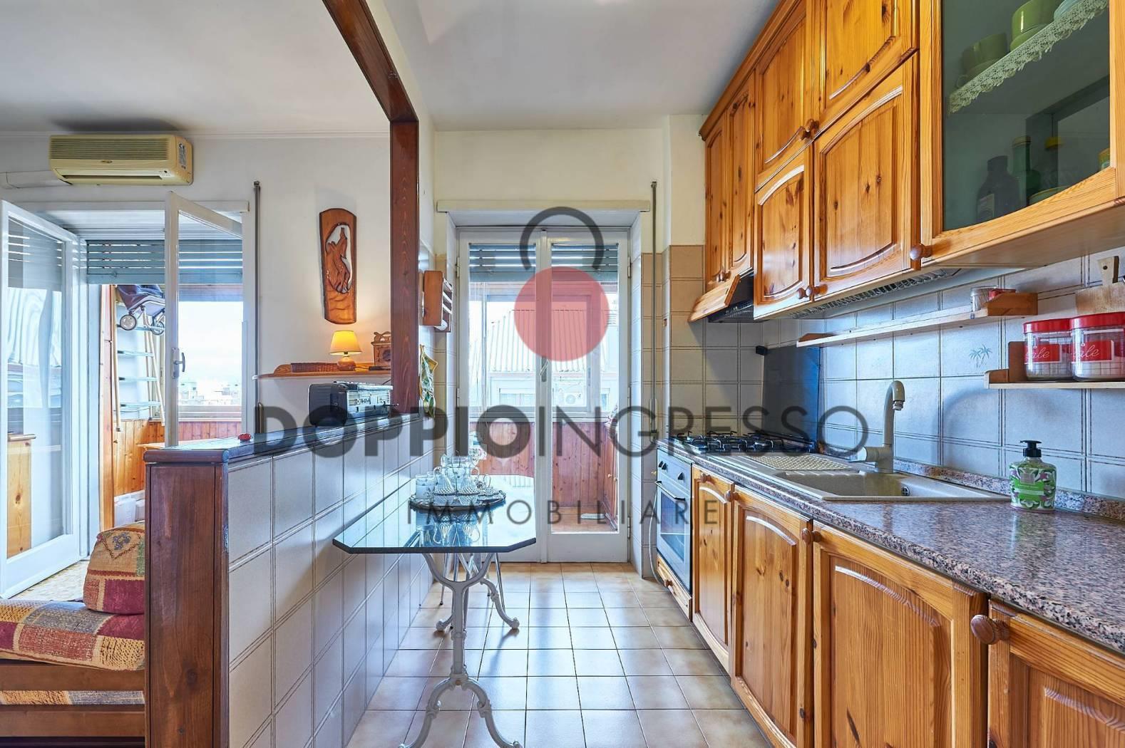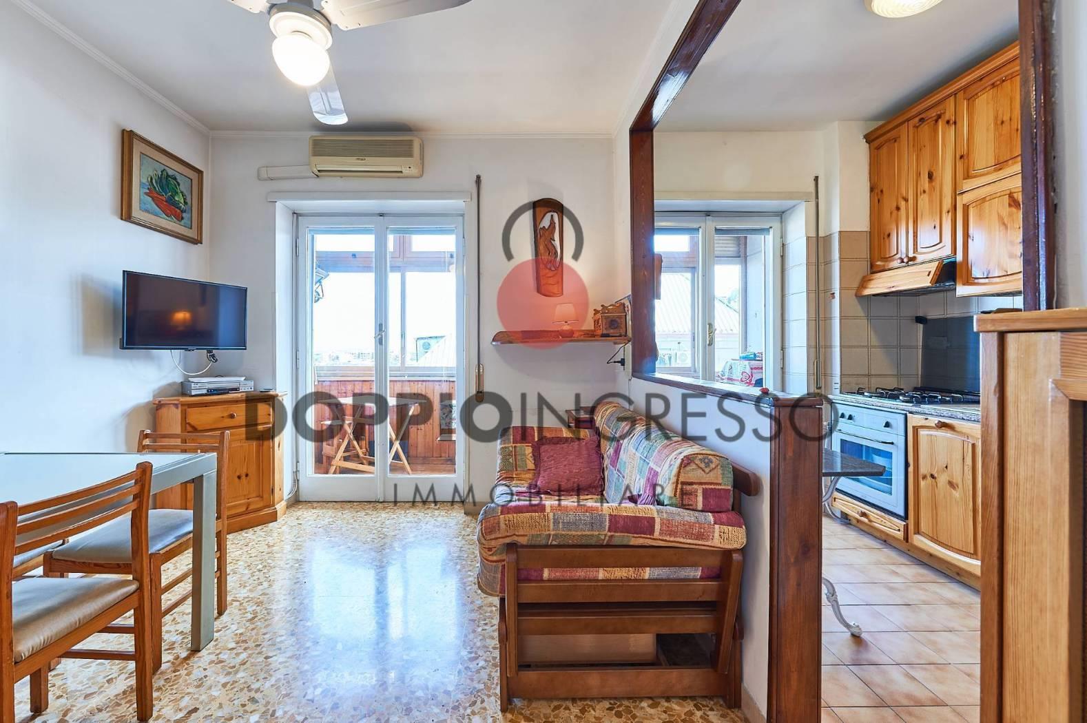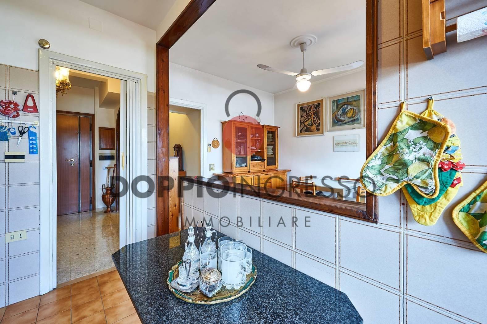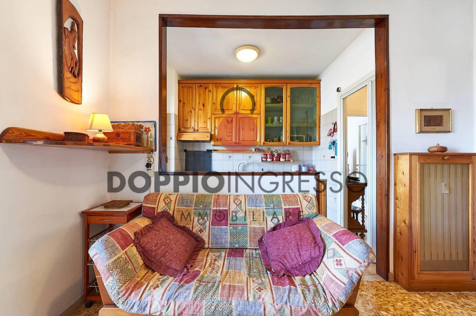 L'appartamento attualmente è composto da: ingresso, ampia sala, cucina collegata con la zona soggiorno, camera da letto e doppi servizi di cui uno in camera. Completa la proprietà una veranda condonata.
