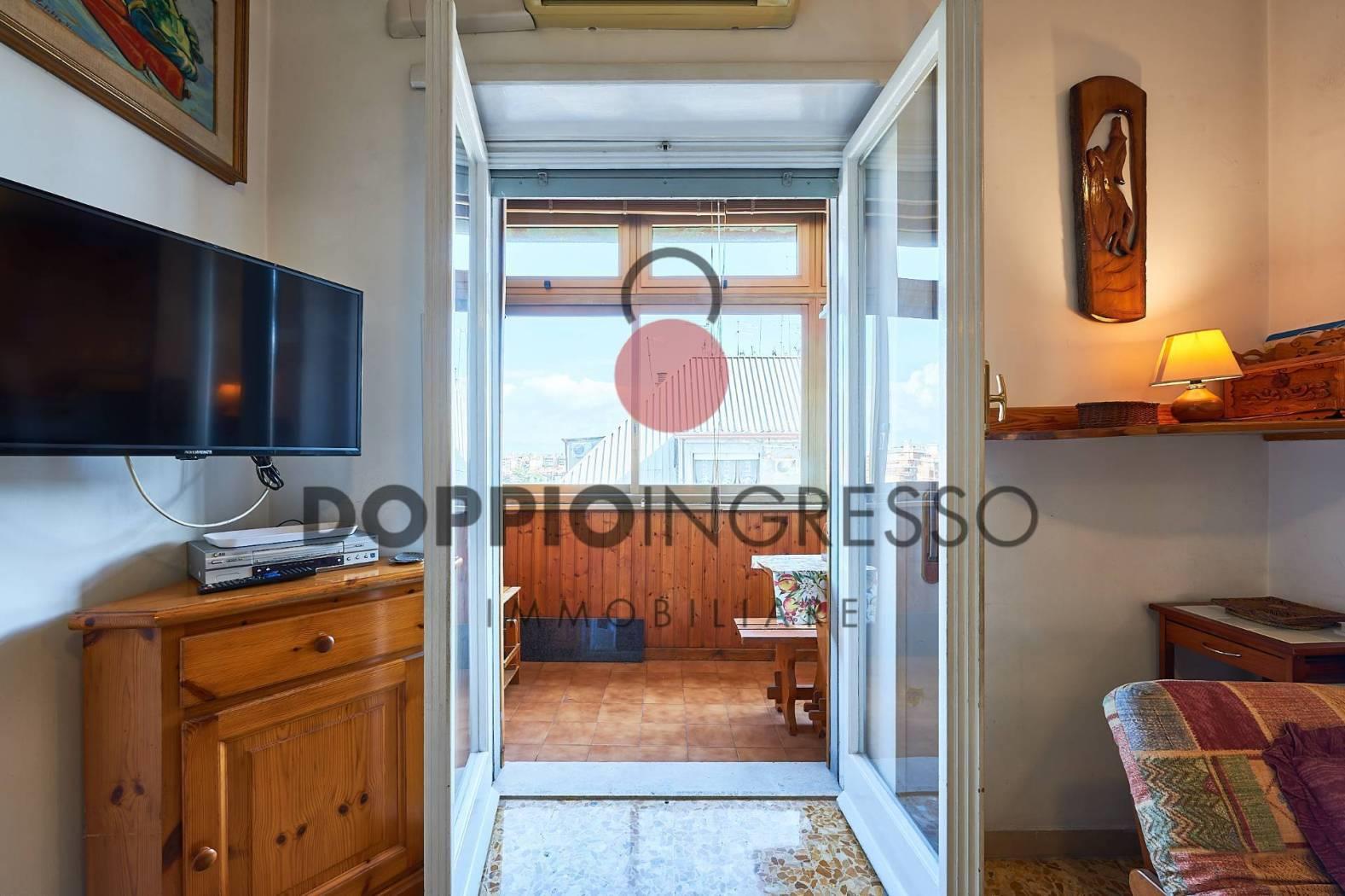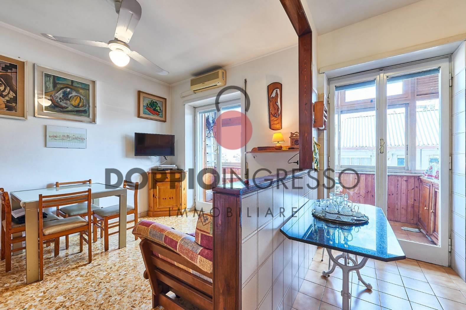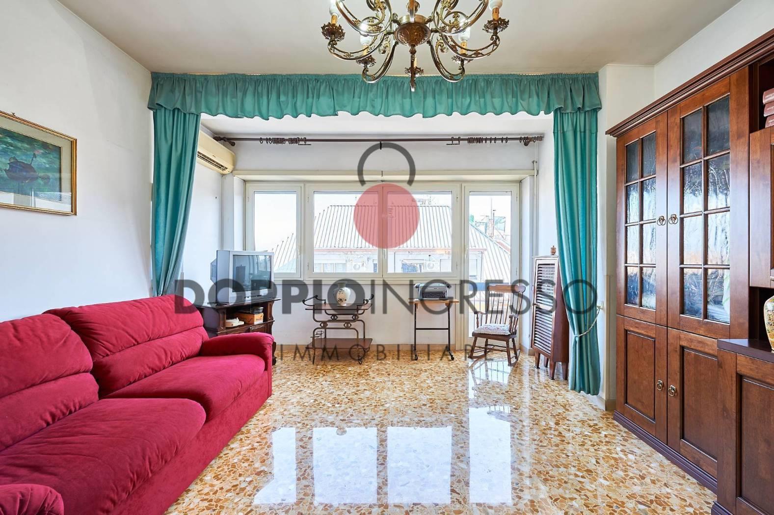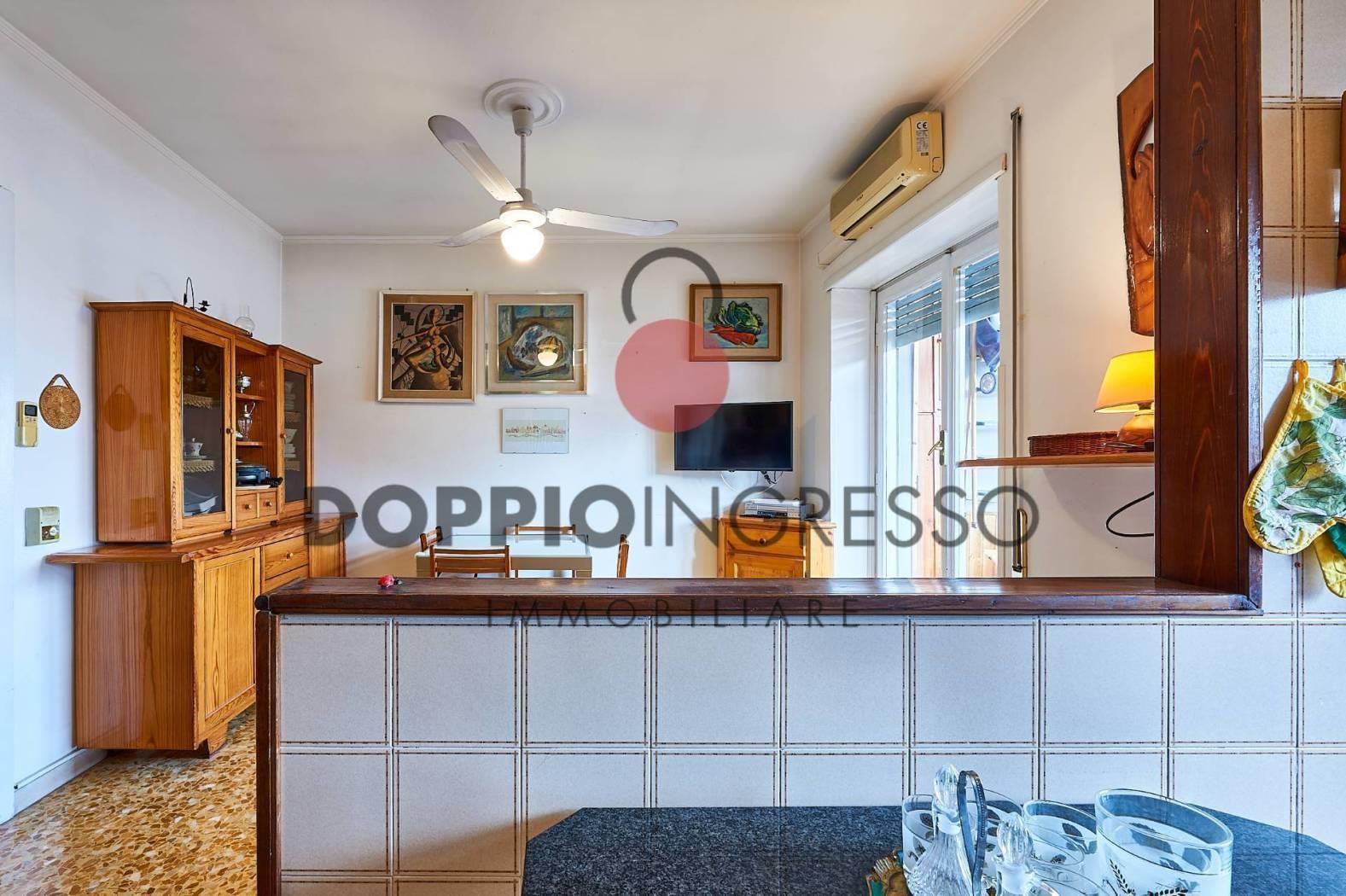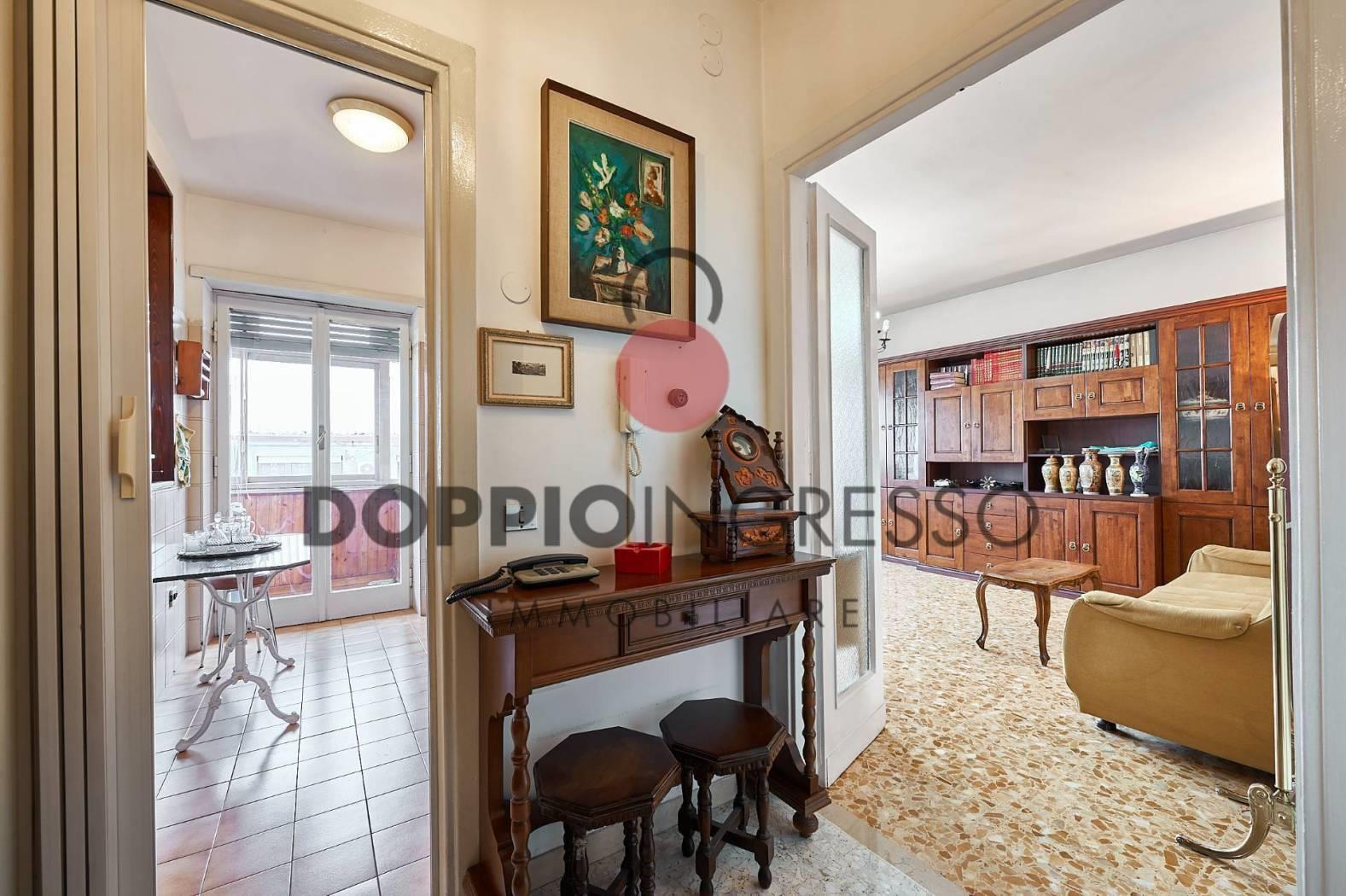 L'appartamento attualmente è composto da: ingresso, ampia sala, cucina collegata con la zona soggiorno, camera da letto e doppi servizi di cui uno in camera. Completa la proprietà una veranda condonata.
