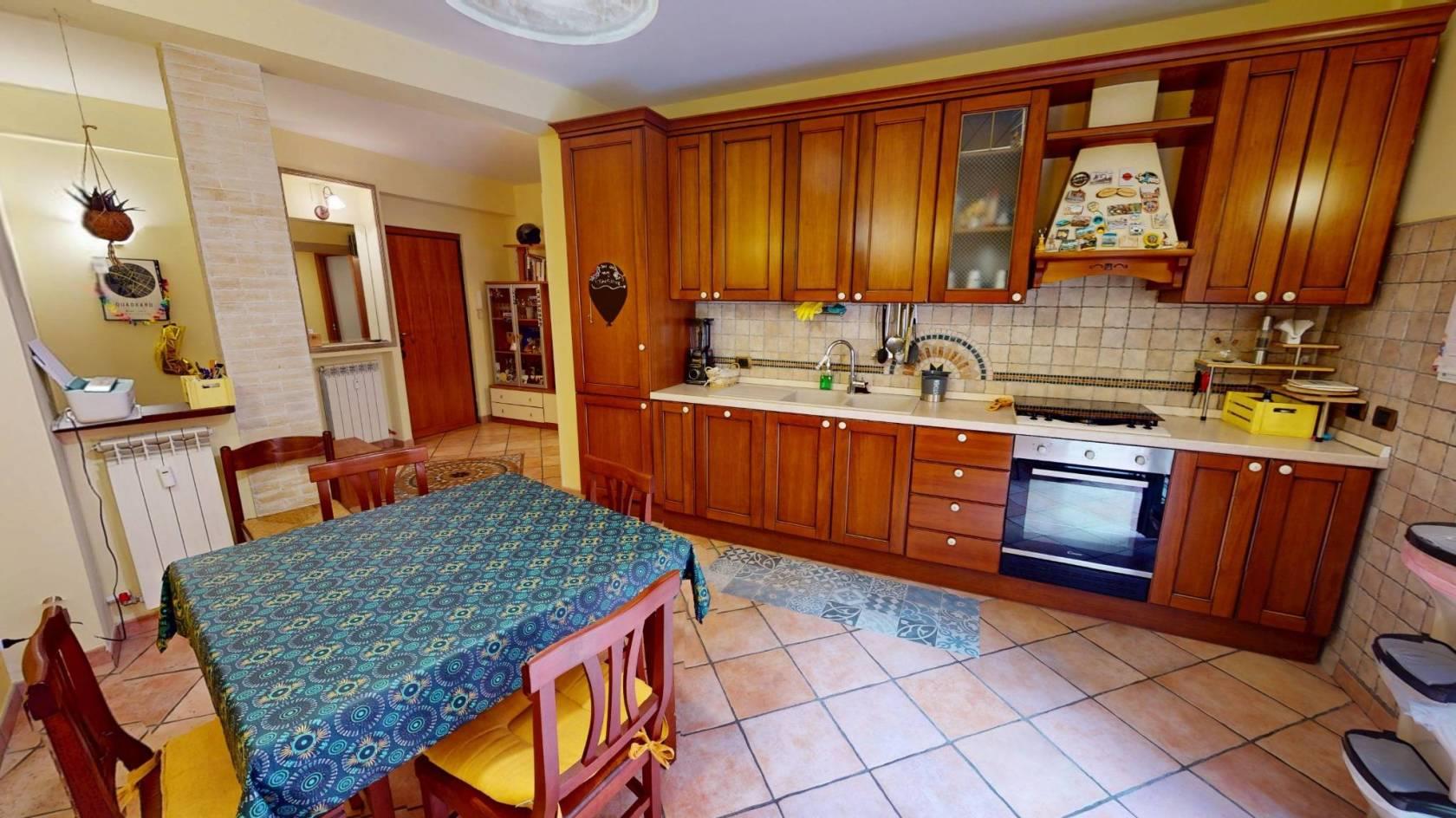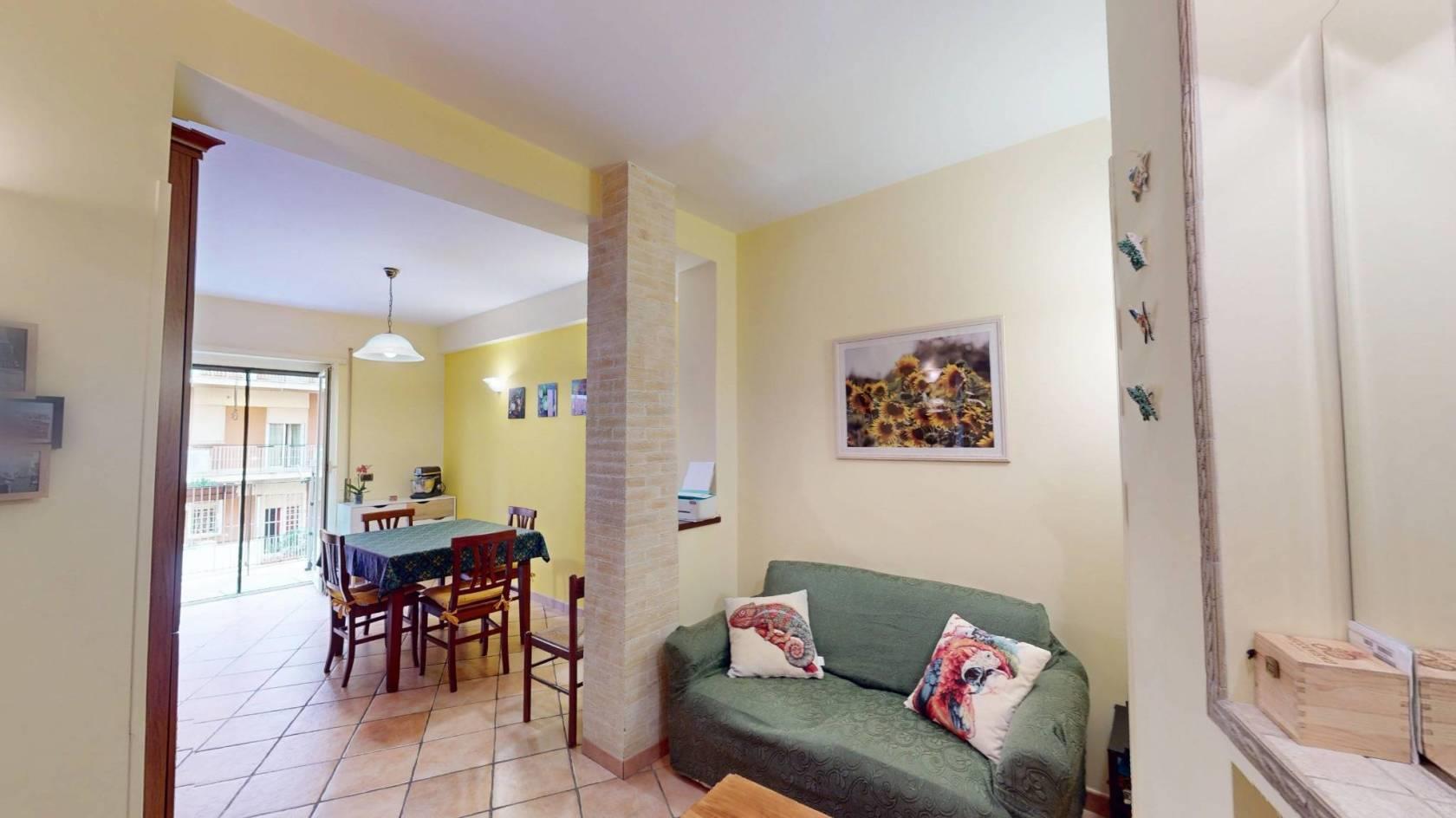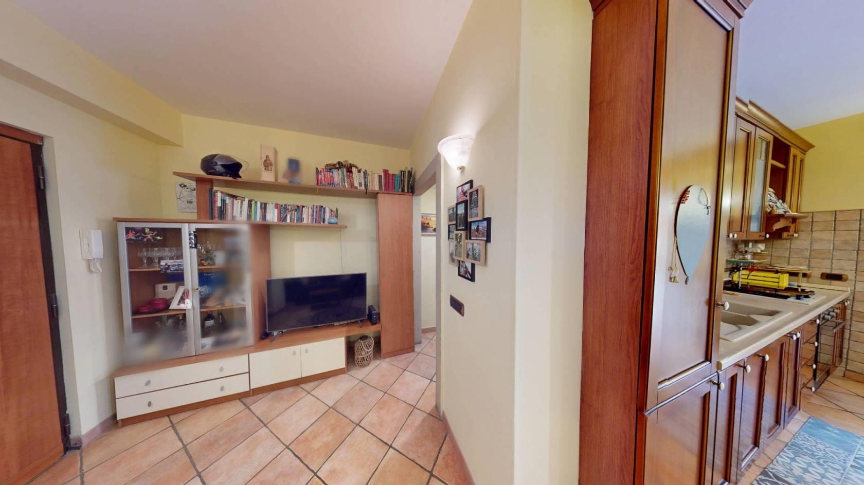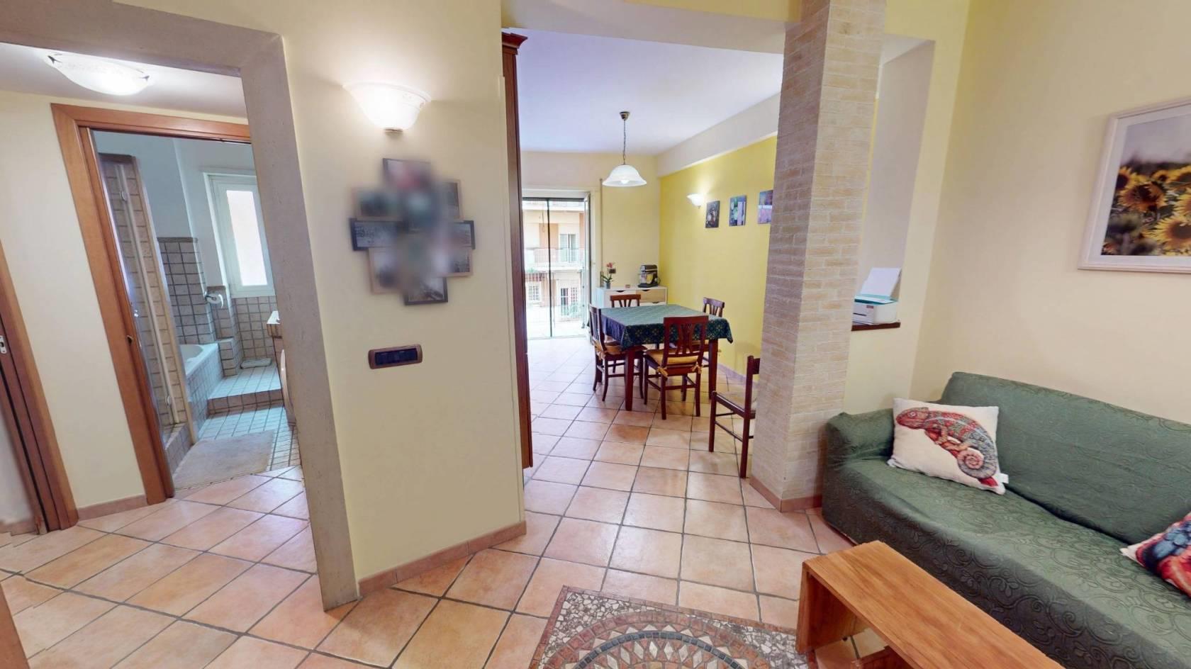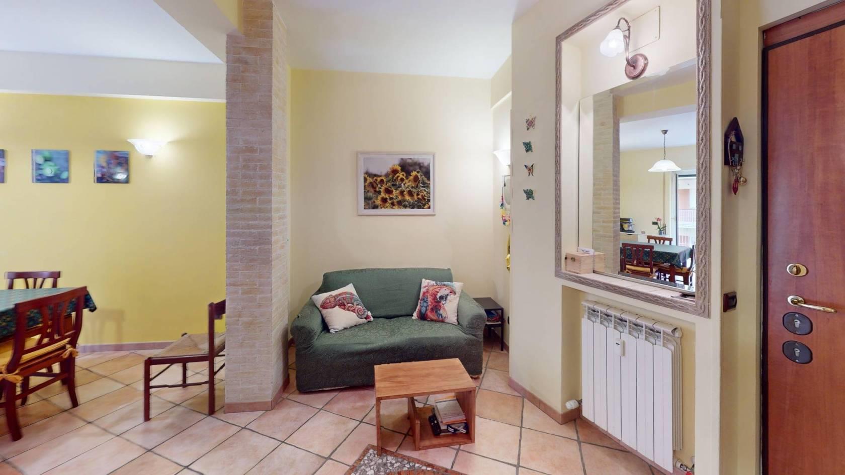 Zona Giorno: L'ingresso, ampio e di forma regolare, è attualmente utilizzato come accogliente zona soggiorno. Una pratica apertura lo collega alla cucina abitabile, garantendo una piacevole continuità visiva pur mantenendo i due ambienti ben distinti.