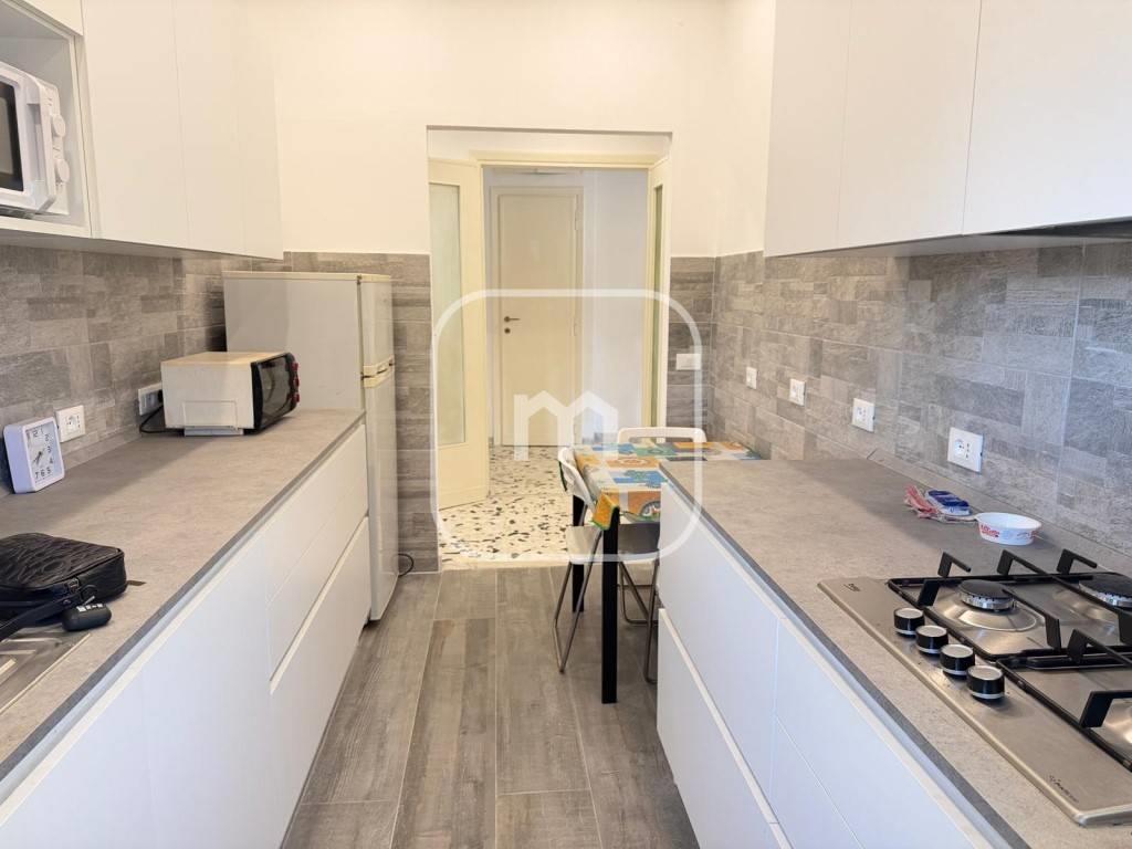 Superficie di 95 mq circa, ben distribuita con ampio ingresso che conduce ad un luminoso salone con annesso balcone. Seguendo ripostiglio, disimpegno cucina abitabile, due camere matrimoniali entrambe con balcone annesso, ed un bagno moderno con finestra e doccia. E' presente un comodo soppalco situato sopra il ripostiglio. Parzialmente arredata con mobili pari al nuovo.