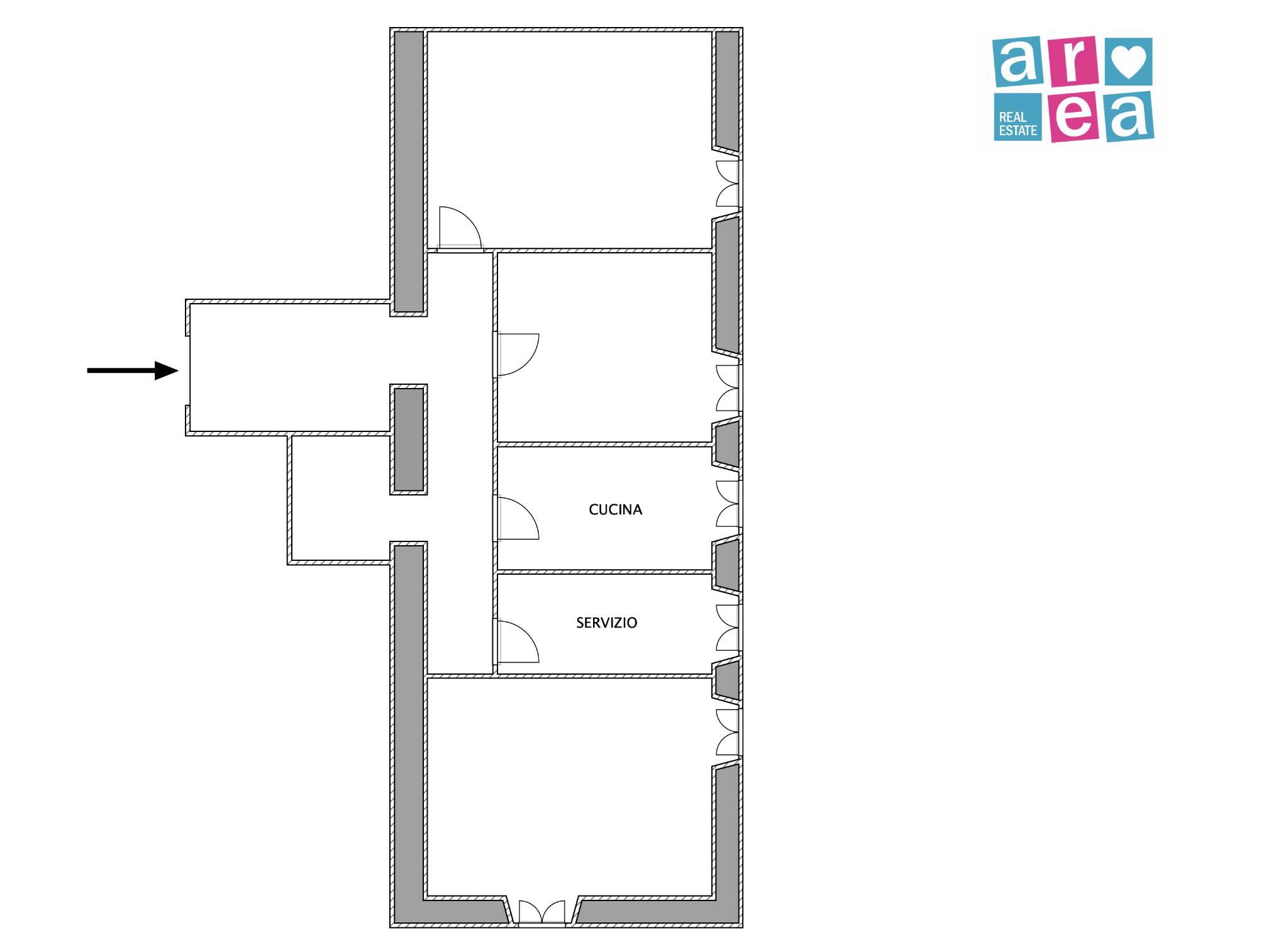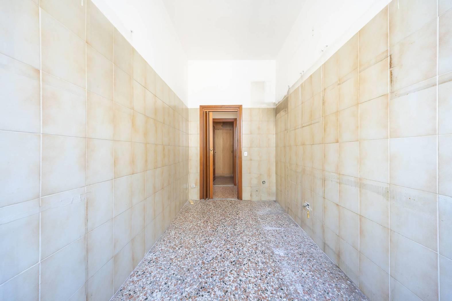 La disposizione interna, favorita dalle tramezzature, offre diverse possibilità di ridistribuzione degli spazi, inclusa la realizzazione di un secondo servizio.
