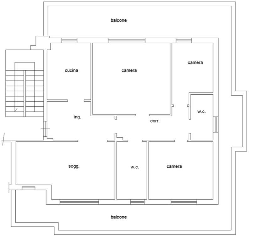 L'appartamento è in buono stato interno ed è composto da ingresso, salone, cucina abitabile, ampio disimpegno, due camere da letto matrimoniali, una cameretta, doppi servizi.