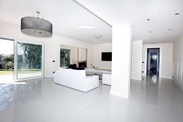 Ingresso che si apre su un ampio salone luminoso, con camino e spazio sufficiente per creare un’area conviviale e di relax.