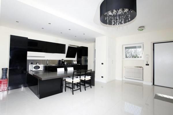 Cucina a vista, completamente arredata e funzionale, che si integra perfettamente con la zona living.