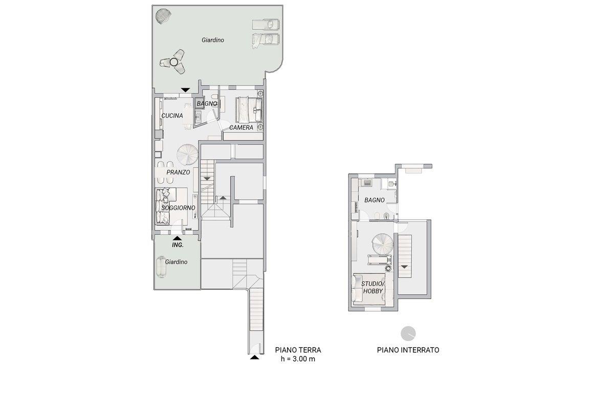 Gode di un doppio giardino privato di circa 85 mq, sia sul fronte che sul retro, ideale per chi ama gli spazi esterni.