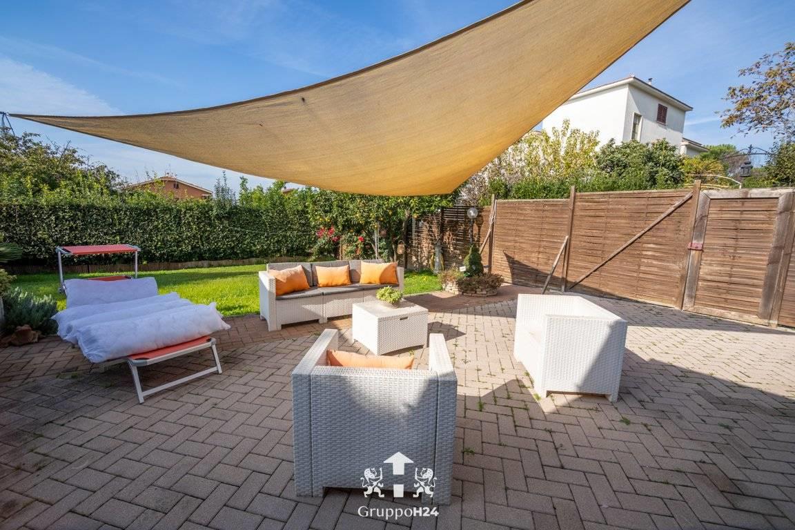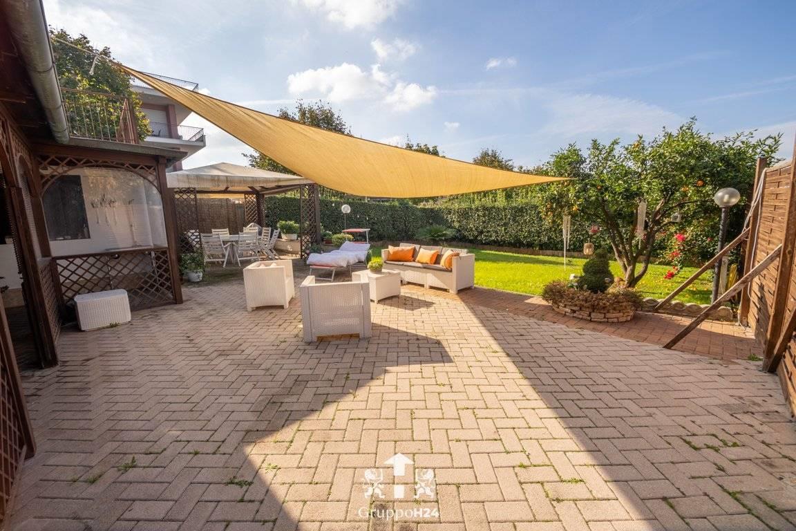 Gruppoh24 propone in vendita esclusivo Appartamento in villa su due livelli per un totale di 300 mq, con lotto di proprietà per parcheggio di più autovetture di circa 700 mq, offrendo ulteriori spazi verdi e alberi da frutto di ulteriori 600 mq. Al piano terra rialzato troviamo un comodo trilocale composto di: ampio salone molto luminoso con accesso a un terrazzo di circa 100 mq, cucina abitabile, disimpegno, due camere da letto, due bagni e un comodo ripostiglio. Al piano terra/sala hobby troviamo un bilocale indipendente con giardino di proprietà di circa 80 mq, arricchito da un portico perfetto per godersi le serate estive in tranquillità. Attraverso un ampio ingresso sbancato arriviamo ad un salone doppio, una cucina abitabile, una camera matrimoniale con cabina armadio e lavanderia annessa, una cameretta e un bagno finestrato. L'immobile è in ottimo stato interno e si distingue per la sua luminosità. Con due ingressi separati, risulta ideale per due famiglie che desiderano vivere vicine ma con la propria indipendenza. Il parcheggio privato e gli spazi esterni completano questa proposta, rendendola particolarmente interessante per chi cerca confort e privacy. Classe energetica D.