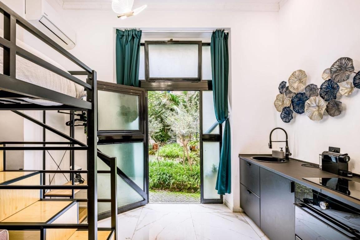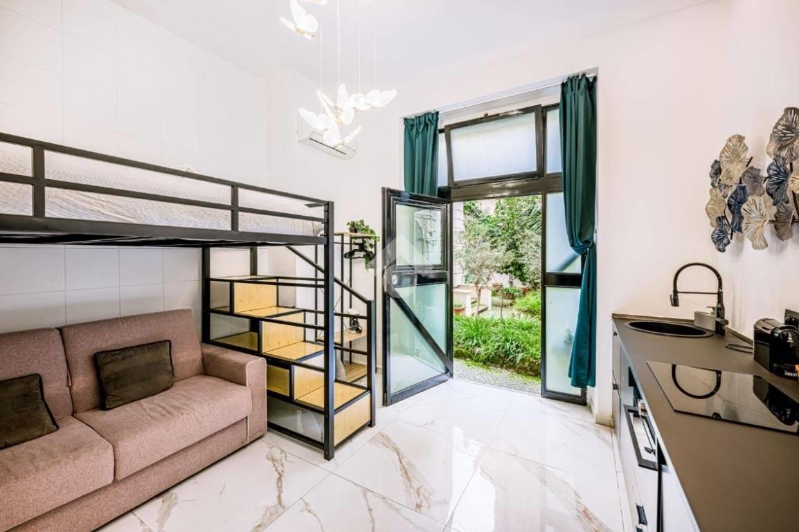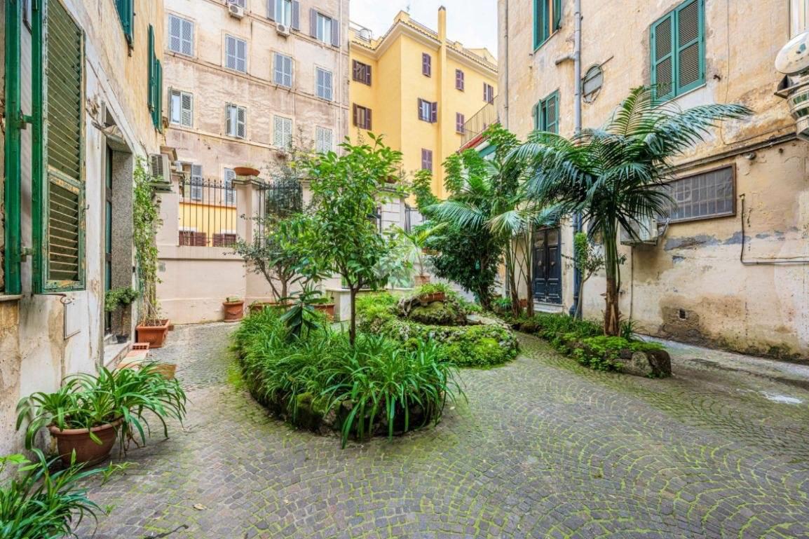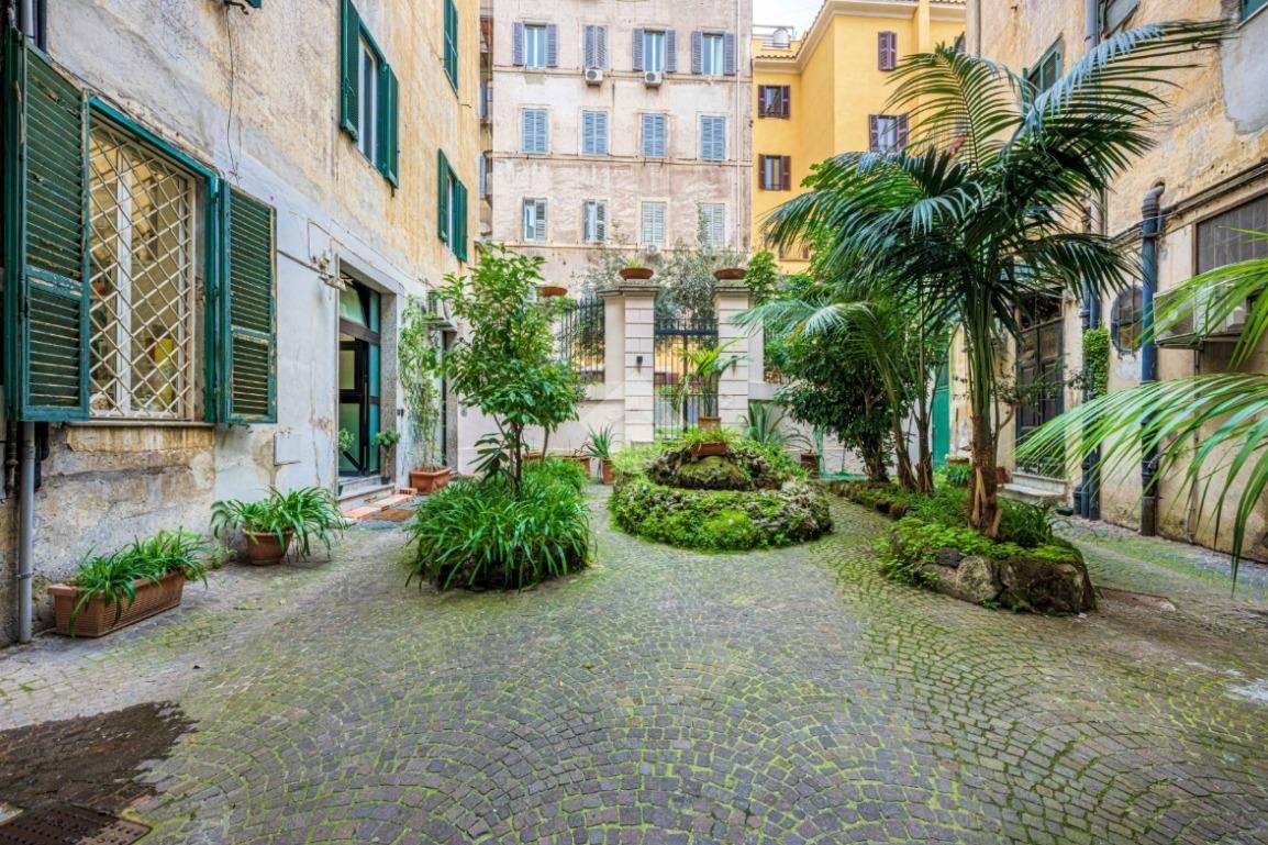 L’affaccio interno sul giardino condominiale garantisce silenzio e riservatezza, elemento raro in pieno Centro Storico.