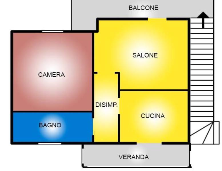 L'immobile oggetto della vendita è composto da ampio soggiorno, cucina abitabile, camera matrimoniale, bagno e balcone verandato.