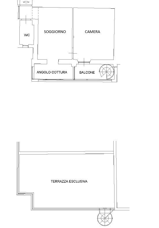 Ampia terrazza di circa 20 mq, accessibile tramite una scala esterna dal balcone