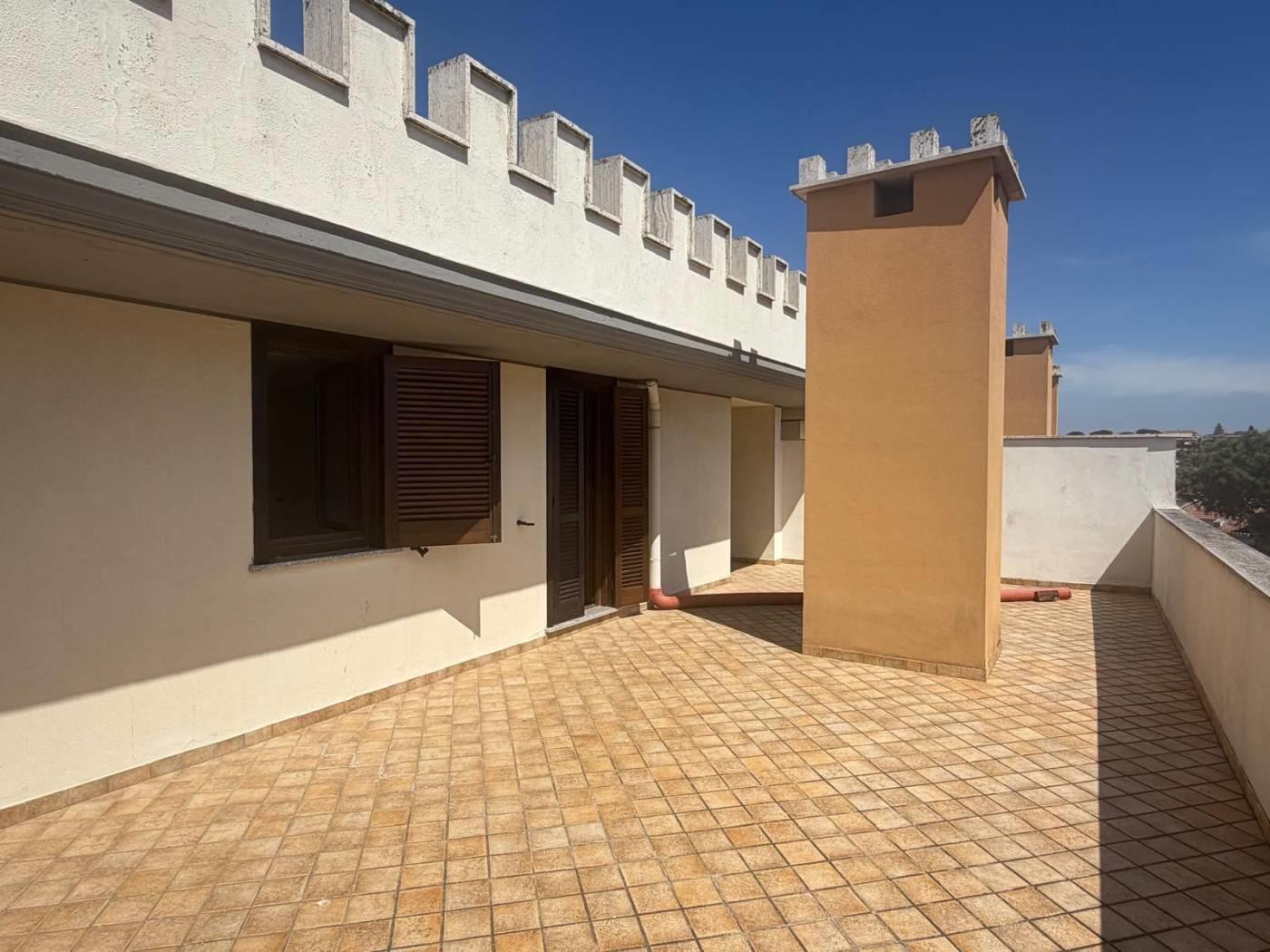 NUOVA CALIFORNIA. Proponiamo in vendita all'interno del complesso "Il castello", in palazzina antisismica , appartamento attico monolocale sito al terzo piano con ascensore , ampio terrazzo con gradevole affaccio. Posto auto esterno di proprietà. Acqua potabile, allaccio fogne, gas metano, fibra ottica, antenna centralizzata, predisposizione pannelli solari per produzione acqua calda. Posizione strategica rispetto ai servizi e ai trasporti urbani . Classe energetica g. € 59.000