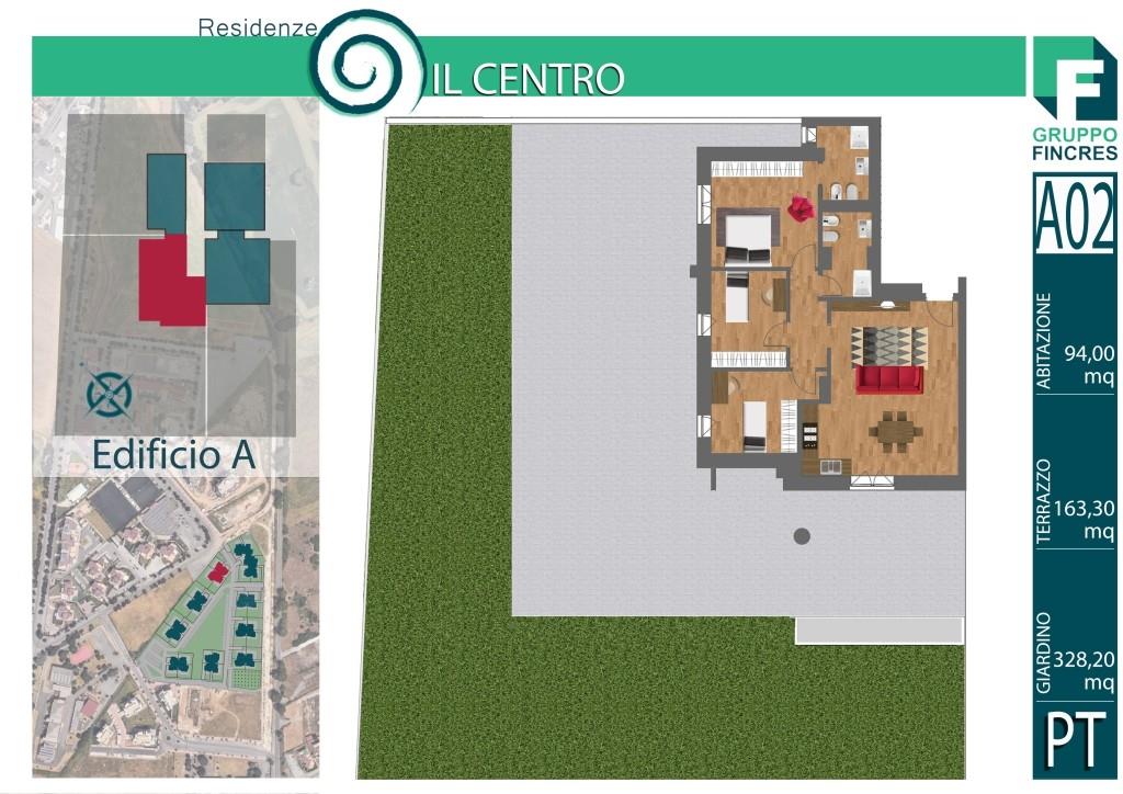 Tra le varie tipologie disponibili, al piano terra proponiamo un ampio appartamento composto da un luminoso salone con angolo cottura, tre camere da letto e doppi servizi. L’abitazione è completata da uno splendido spazio esterno che include un grande terrazzo e un giardino privato di circa 490 mq, ideale per vivere all’aperto in totale privacy.
