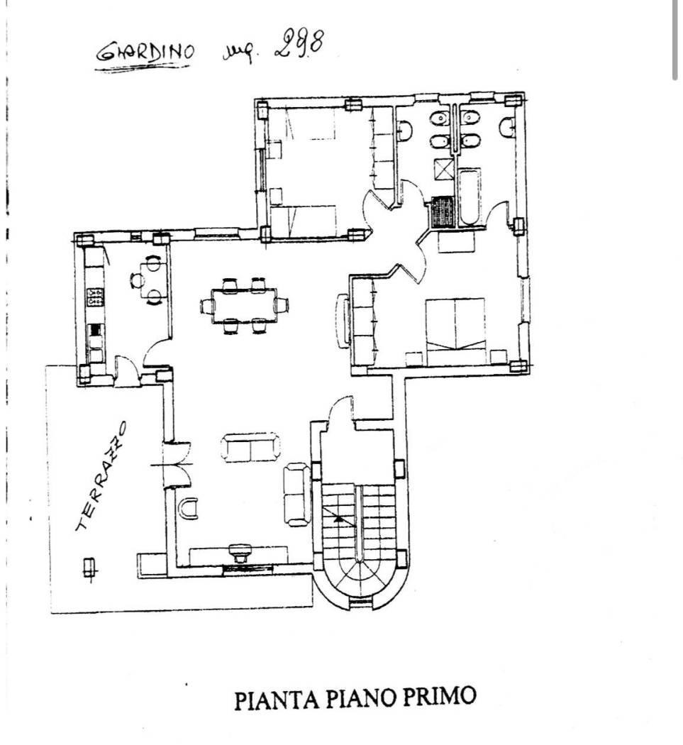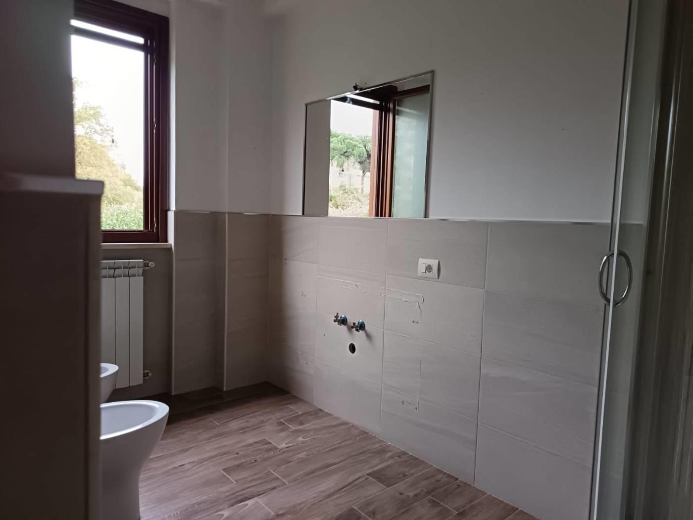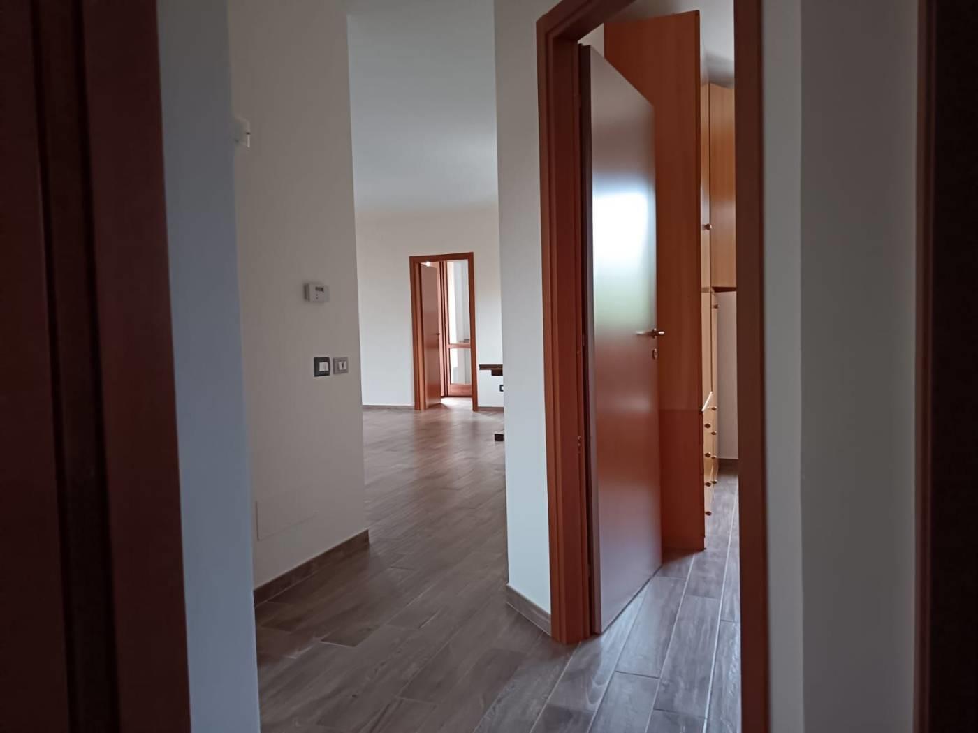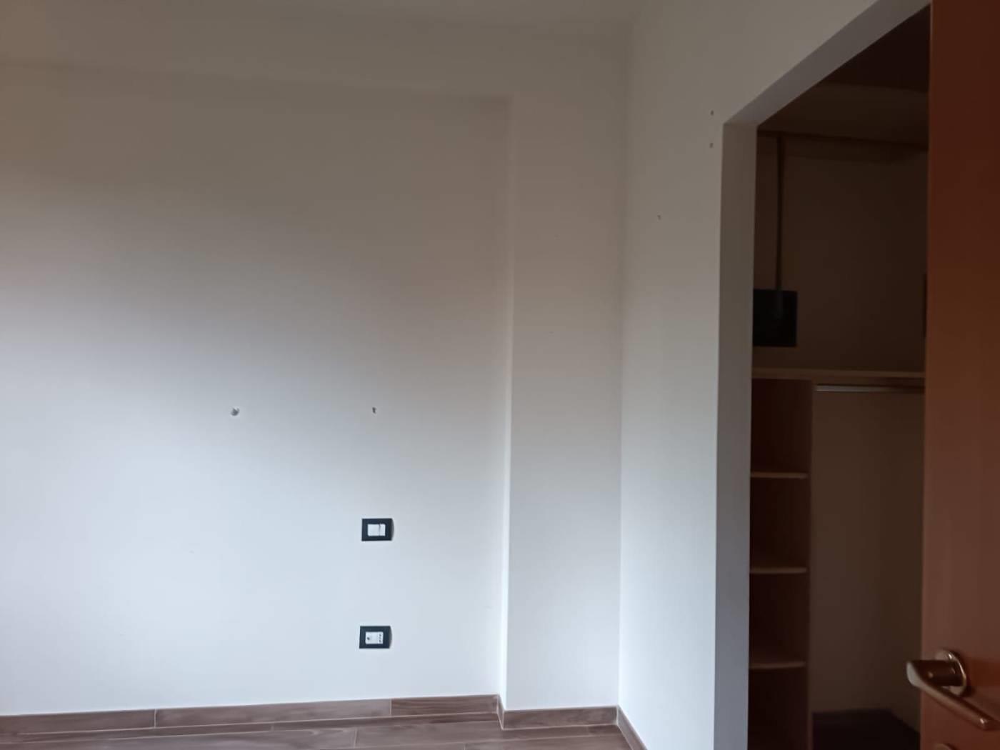 Appartamento primo piano, 110 mq, con ampio salone e cucina abitabile, due camere, cabina armadio, due bagni finestrati, balcone e terrazzo. All'esterno giardino privato.