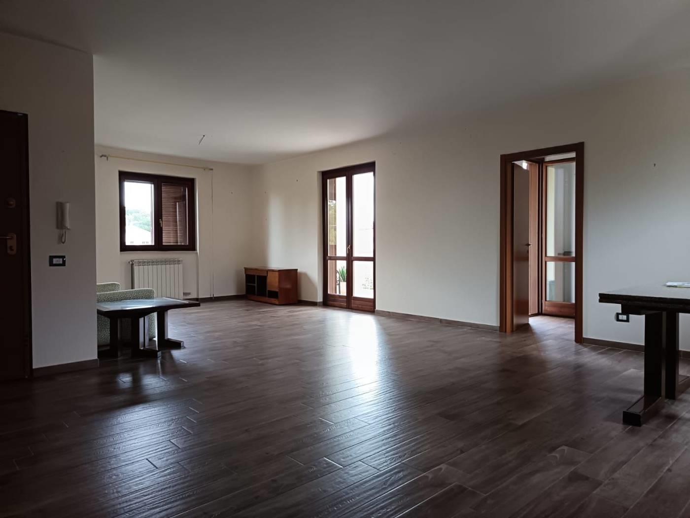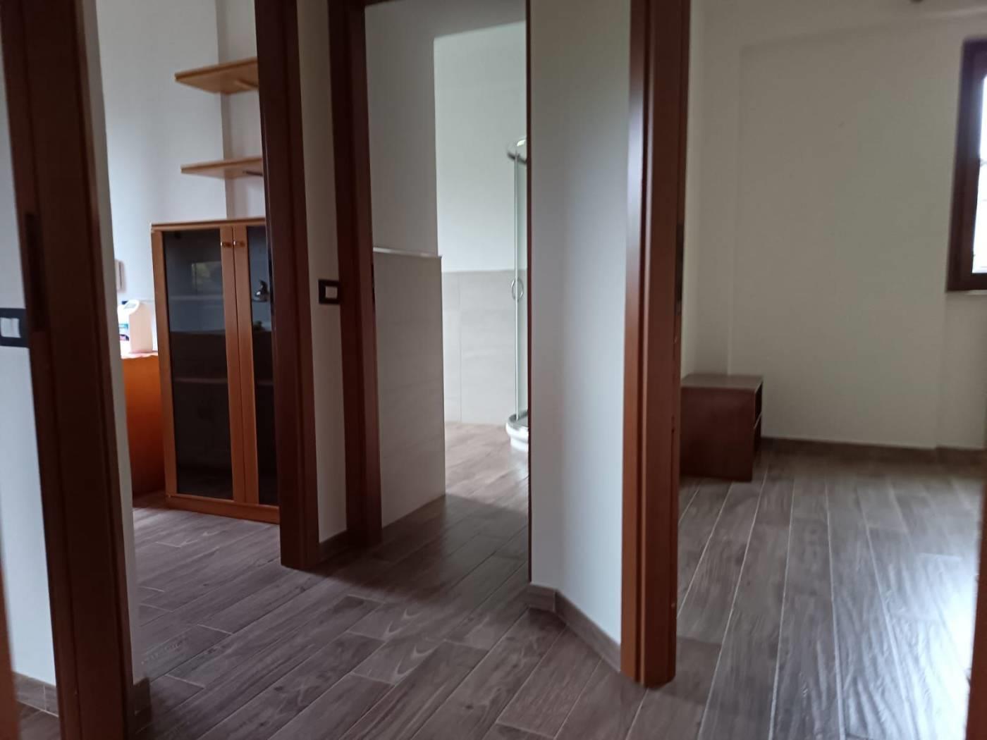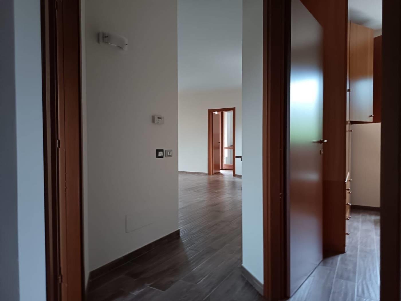 Appartamento primo piano, 110 mq, con ampio salone e cucina abitabile, due camere, cabina armadio, due bagni finestrati, balcone e terrazzo. All'esterno giardino privato.