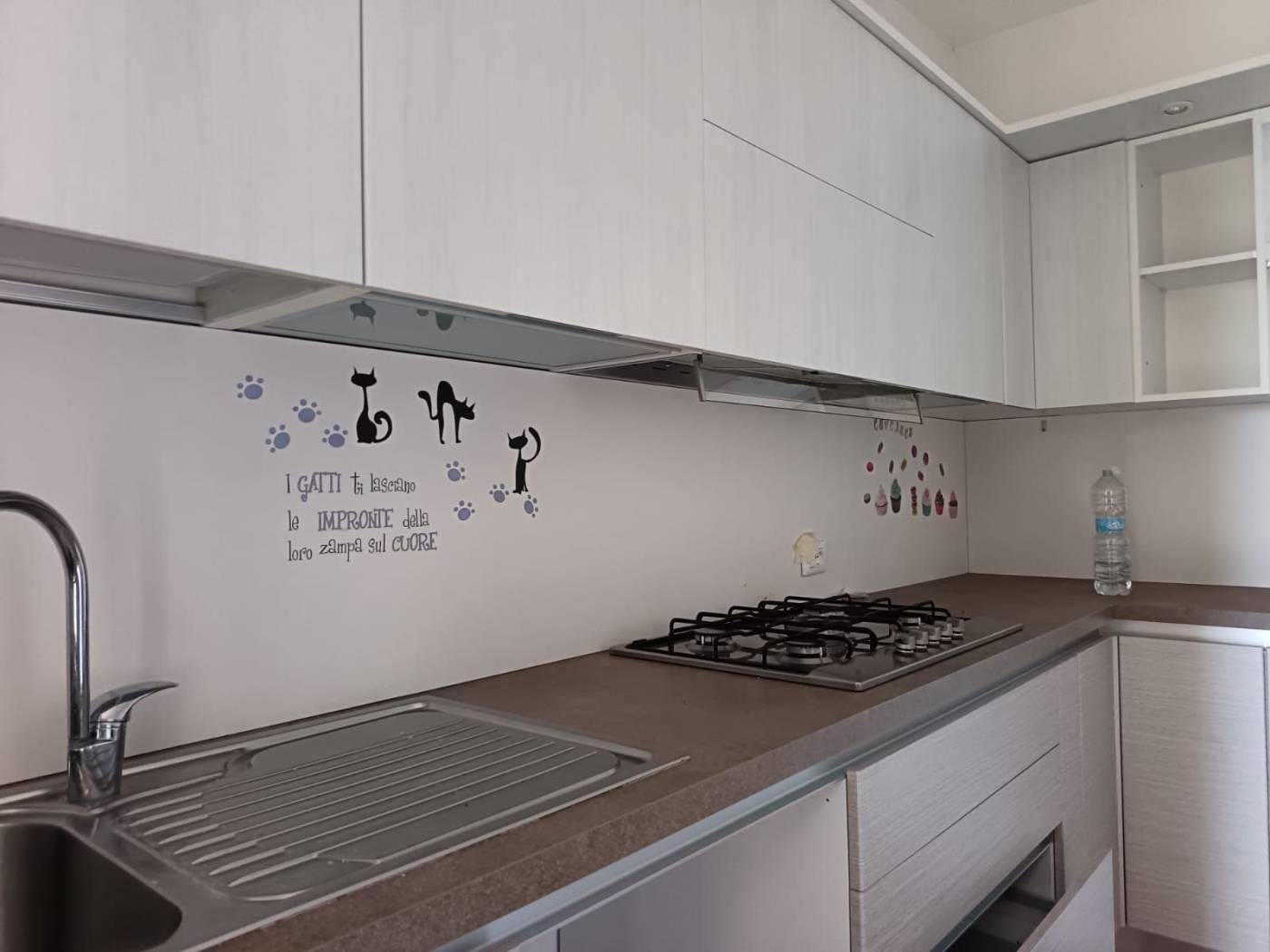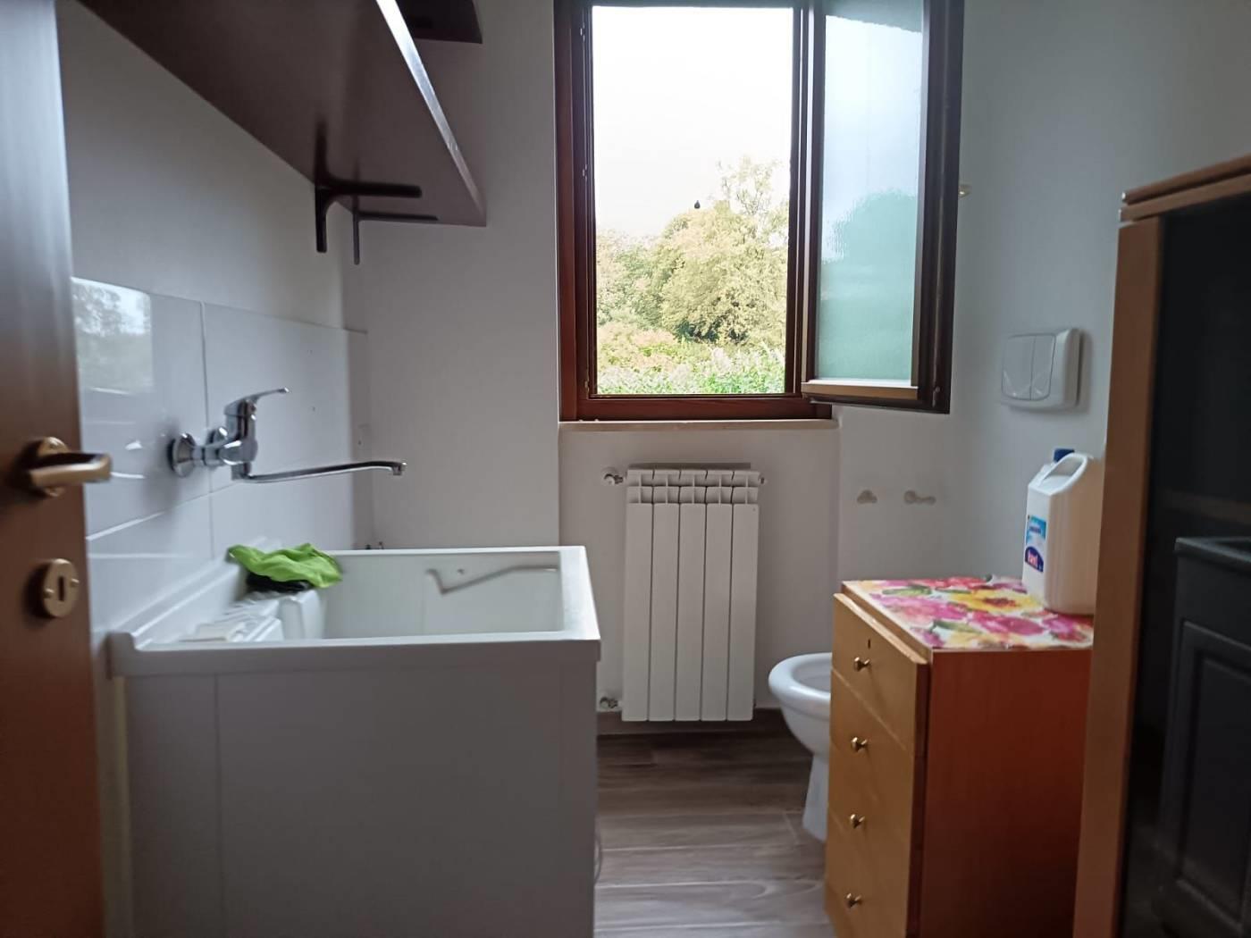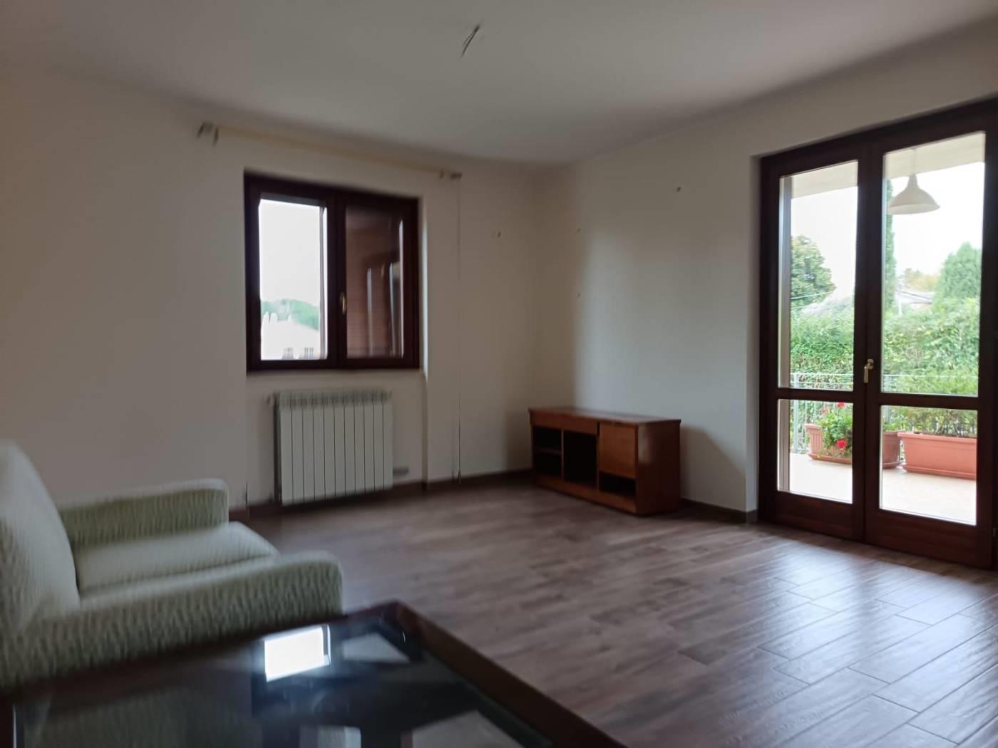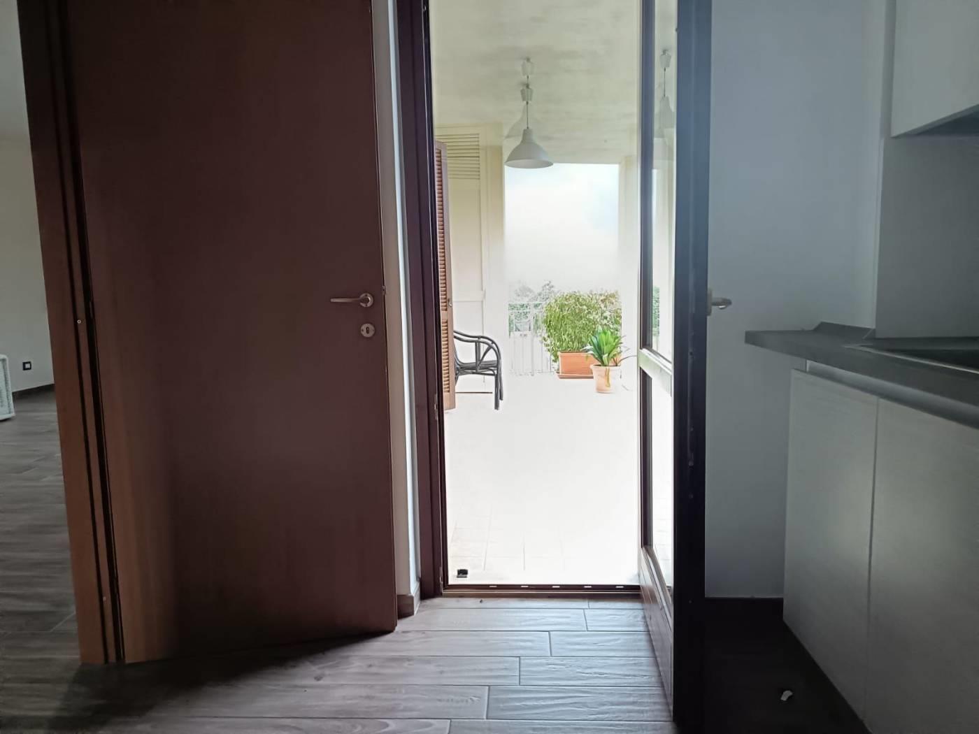 Appartamento primo piano, 110 mq, con ampio salone e cucina abitabile, due camere, cabina armadio, due bagni finestrati, balcone e terrazzo. All'esterno giardino privato.