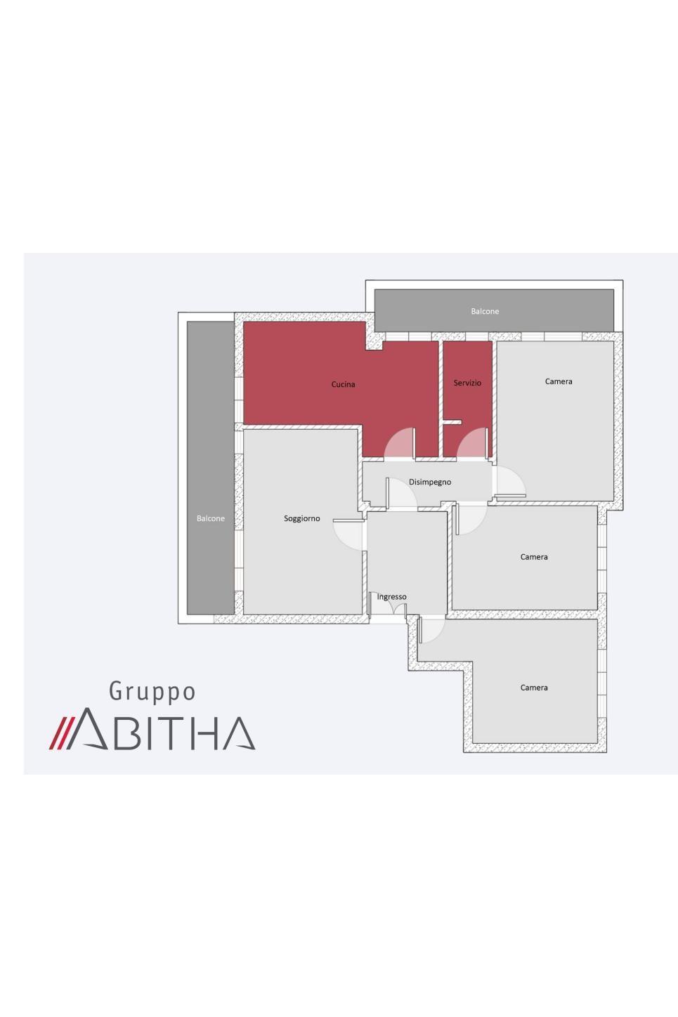 L'immobile è così composto: ampio ingresso, soggiorno, tre camere da letto, cucina abitabile, servizio, armadio a muro, due balconi.