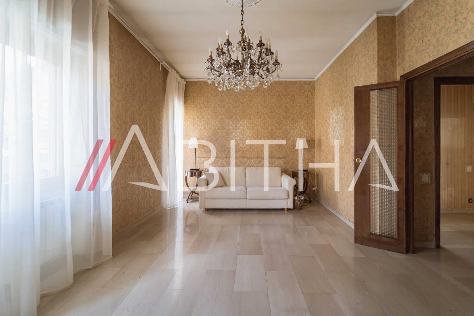 L'appartamento si presenta in discreto stato di manutenzione, la superficie di 125 mq circa è distribuita in modo funzionale, lasciando possibilità di ottimizzare gli spazi per creare un secondo servizio, è dotato di videocitofono, impianto di condizionamento, pavimentazione in marmo in soggiorno, parquet nelle due camere e marmo nella terza camera. Il riscaldamento è centralizzato con contabilizzazione di calore.