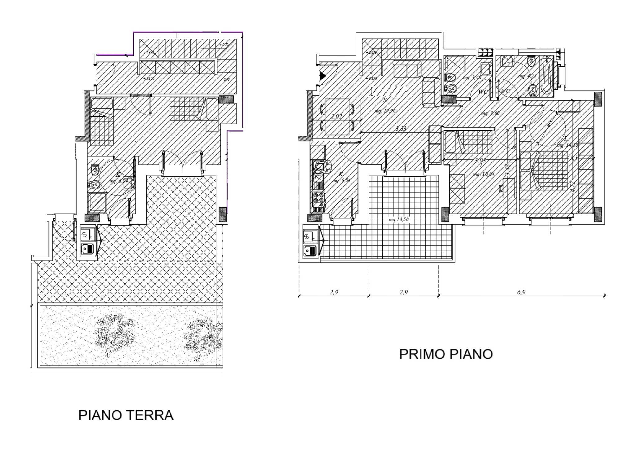 Splendido appartamento bilivello di circa 115 mq interni, al piano terra + primo piano, personalizzabile internamente, composto al primo piano (di circa 80 mq. interni) da soggiorno, due camere da letto, cucina, due bagni e portico di 13,5 mq, ed al piano terra (di circa 35 mq interni) da ingresso, camera da letto, bagno finestrato, portico e terrazza di circa 27 mq e giardino privato di circa 22 mq, cantina e posto auto in garage compresi.