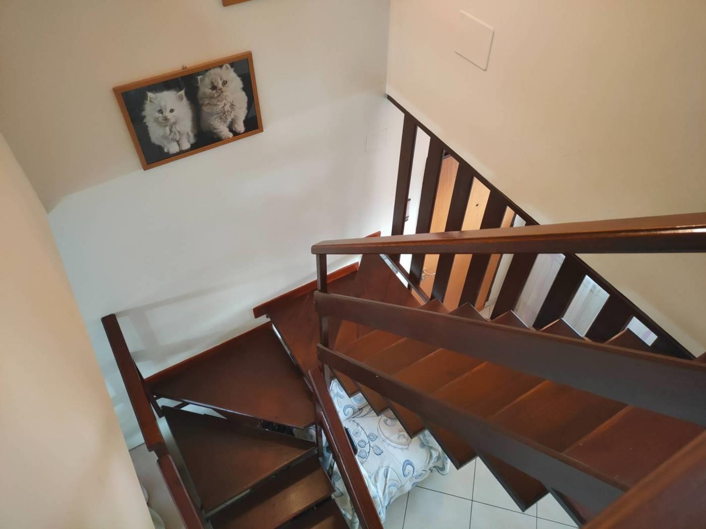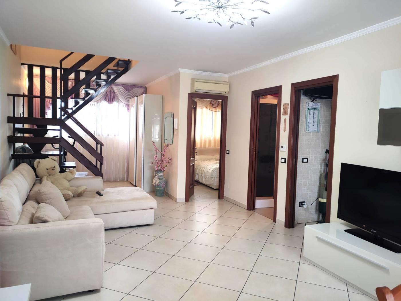 L'appartamento molto luminoso ed in parte recentemente ristrutturato, al suo interno è composto da: ingresso, ampio salone, cucina abitabile con affaccio su un balcone, camera e un bagno con doccia. Una comoda scala in legno ci porta al piano superiore dove troviamo un disimpegno, 2 camere da letto che affacciano su un ampio terrazzo, un bagno con vasca e annessa zona adibita a lavanderia e un balcone.