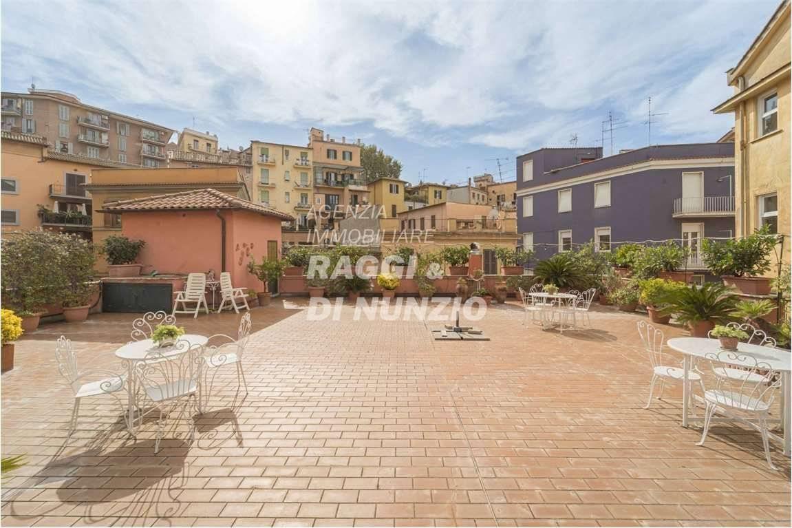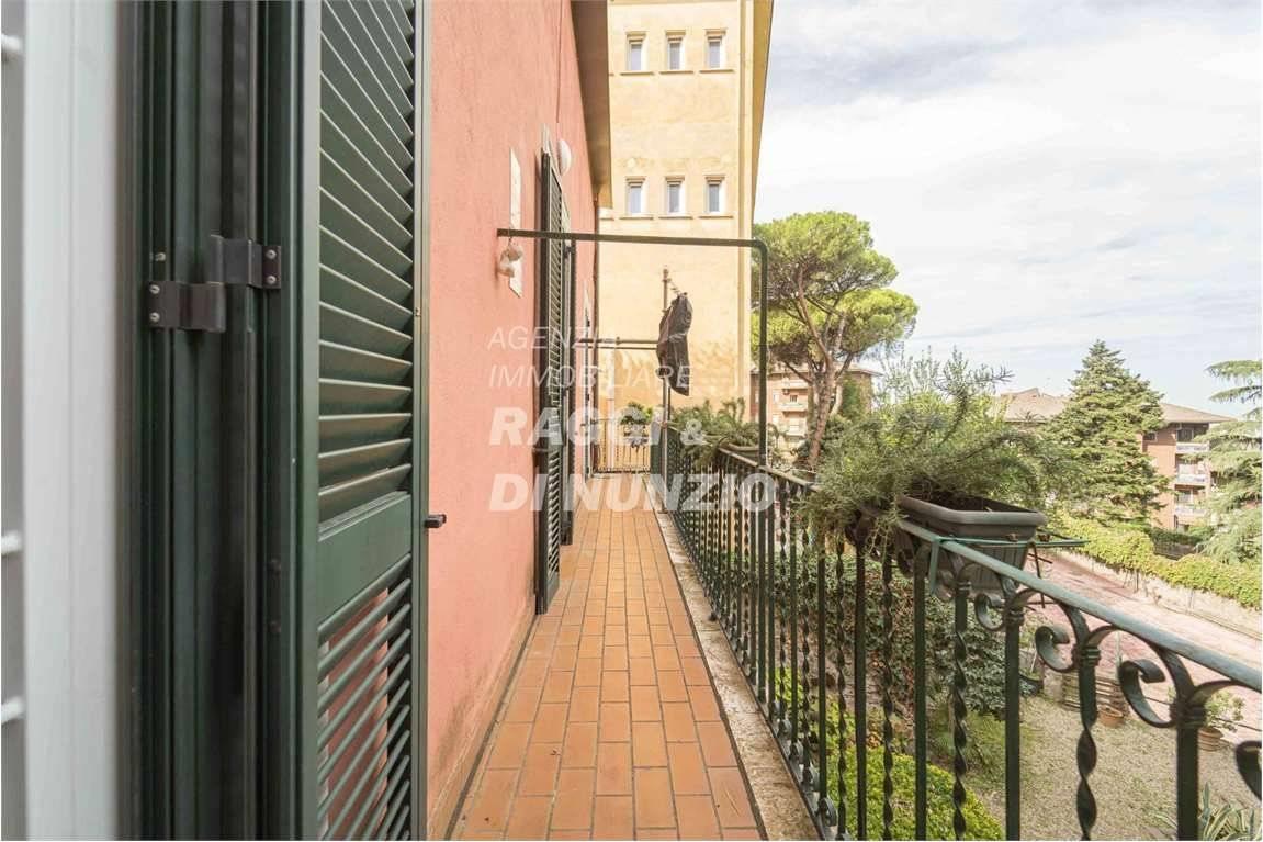 Al piano superiore si sviluppa una terrazza panoramica di circa 200 mq, con vista aperta su Roma e sul verde circostante: uno spazio raro e di grande pregio, ideale per living esterno, area relax o soluzioni outdoor personalizzate.