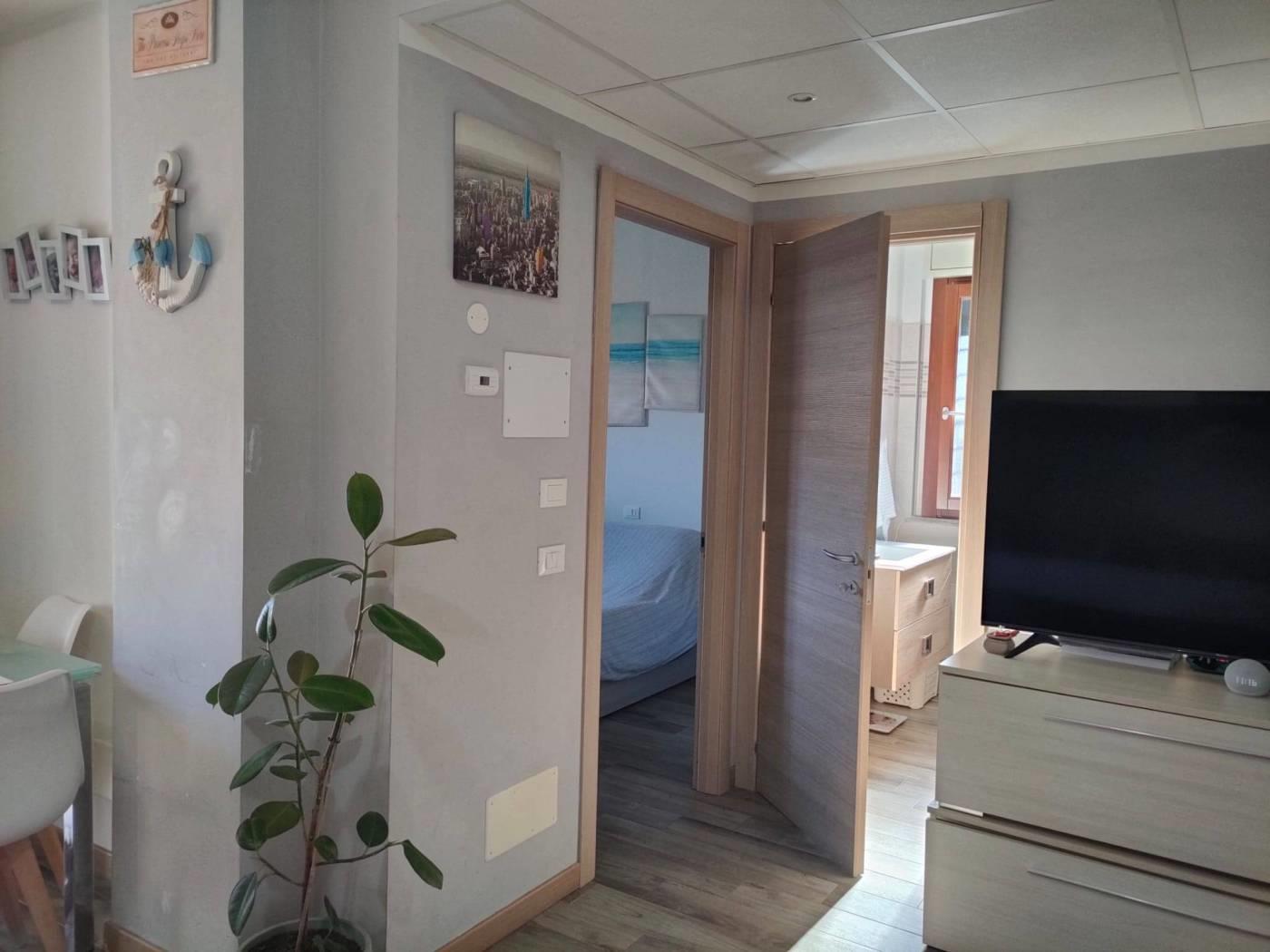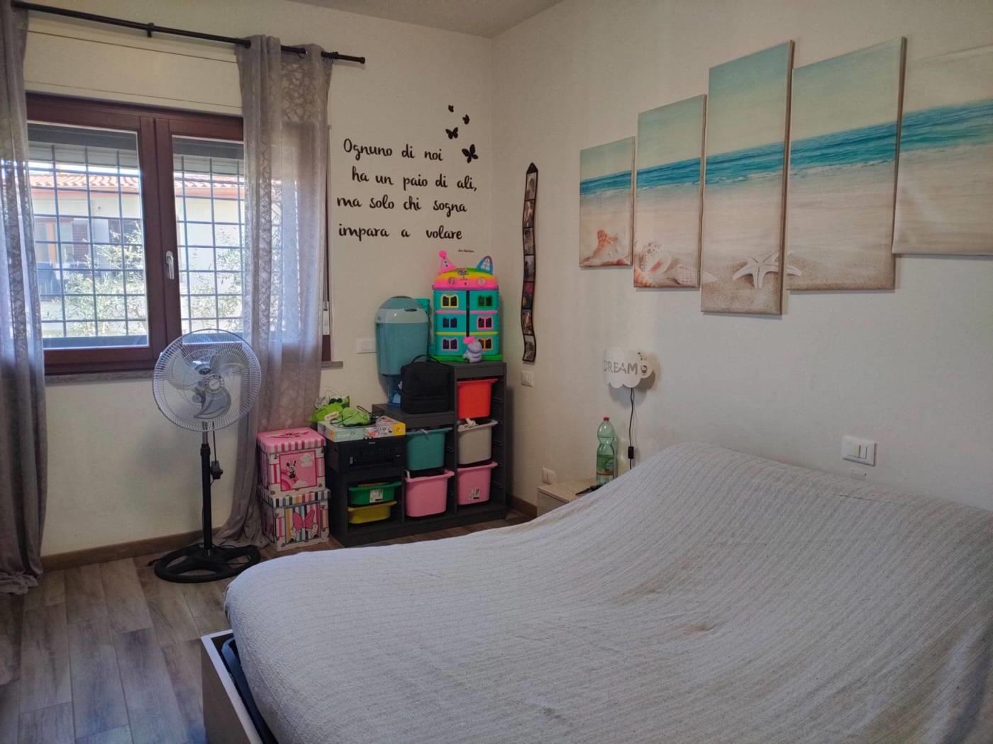 L'immobile si trova all'interno di una palazzina in cortina costruita con eleganza e funzionalità, l'appartamento al piano terra internamente è composto da: soggiorno con cucina a vista, disimpegno, camera da letto e bagno con doccia finestrato. Tutti gli ambienti esternamente affacciano su un ampio giardino privato di ca. 225 mq con alberi di ulivo, luogo ideale per trascorrere giornate all'aperto, con spazio dedicato a pranzi e cene, in pieno relax e tranquillità. Al piano seminterrato tramite ascensore, si raggiunge il garage dove abbiamo di pertinenza un comodo posto auto.
