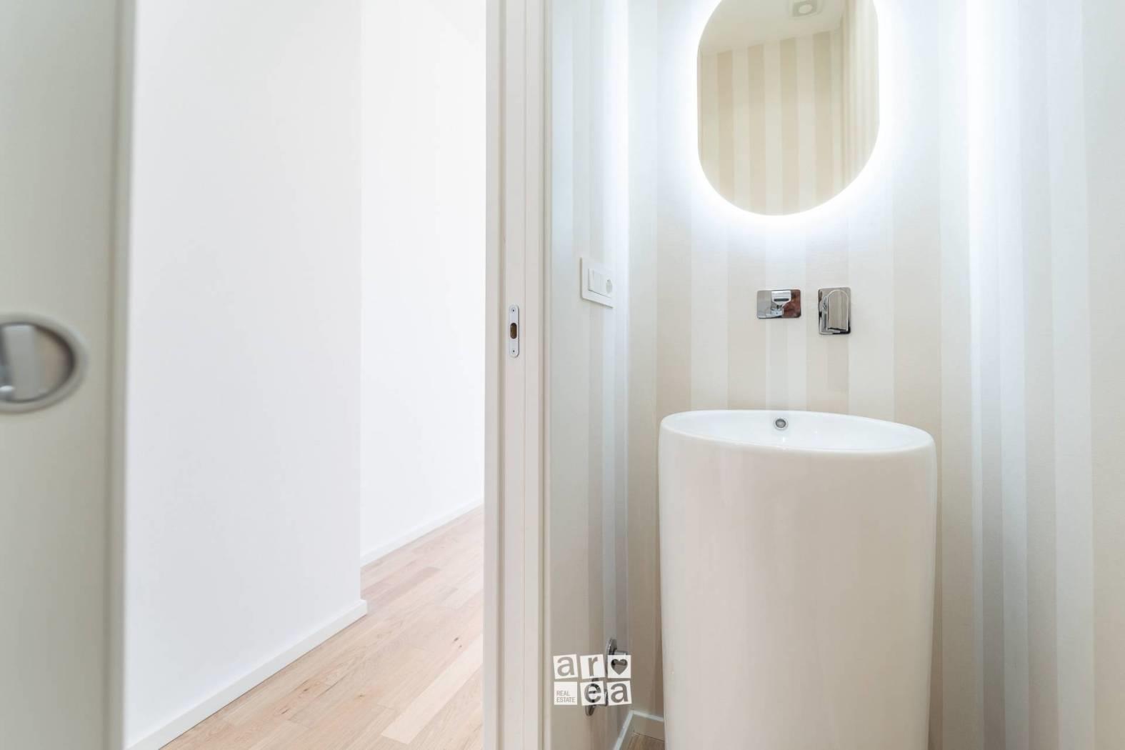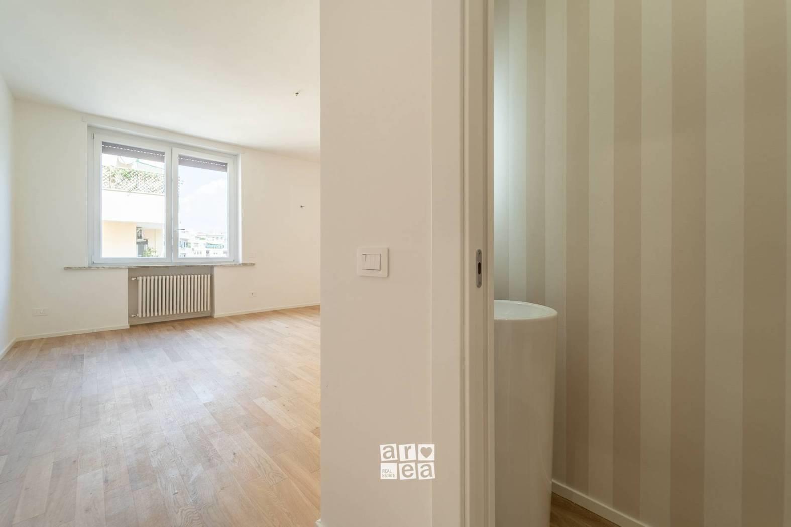 La proprietà, mai abitata, ha una doppia esposizione e coniuga perfettamente estetica e funzionalità. L’ingresso introduce a un pratico guardaroba; segue una zona living con angolo cottura dal design contemporaneo. La camera da letto, ampia e silenziosa, è dotata di balcone, cabina armadio e uno spazio versatile ideale come studio o angolo lettura, impreziosito da finiture curate e atmosfera riservata.