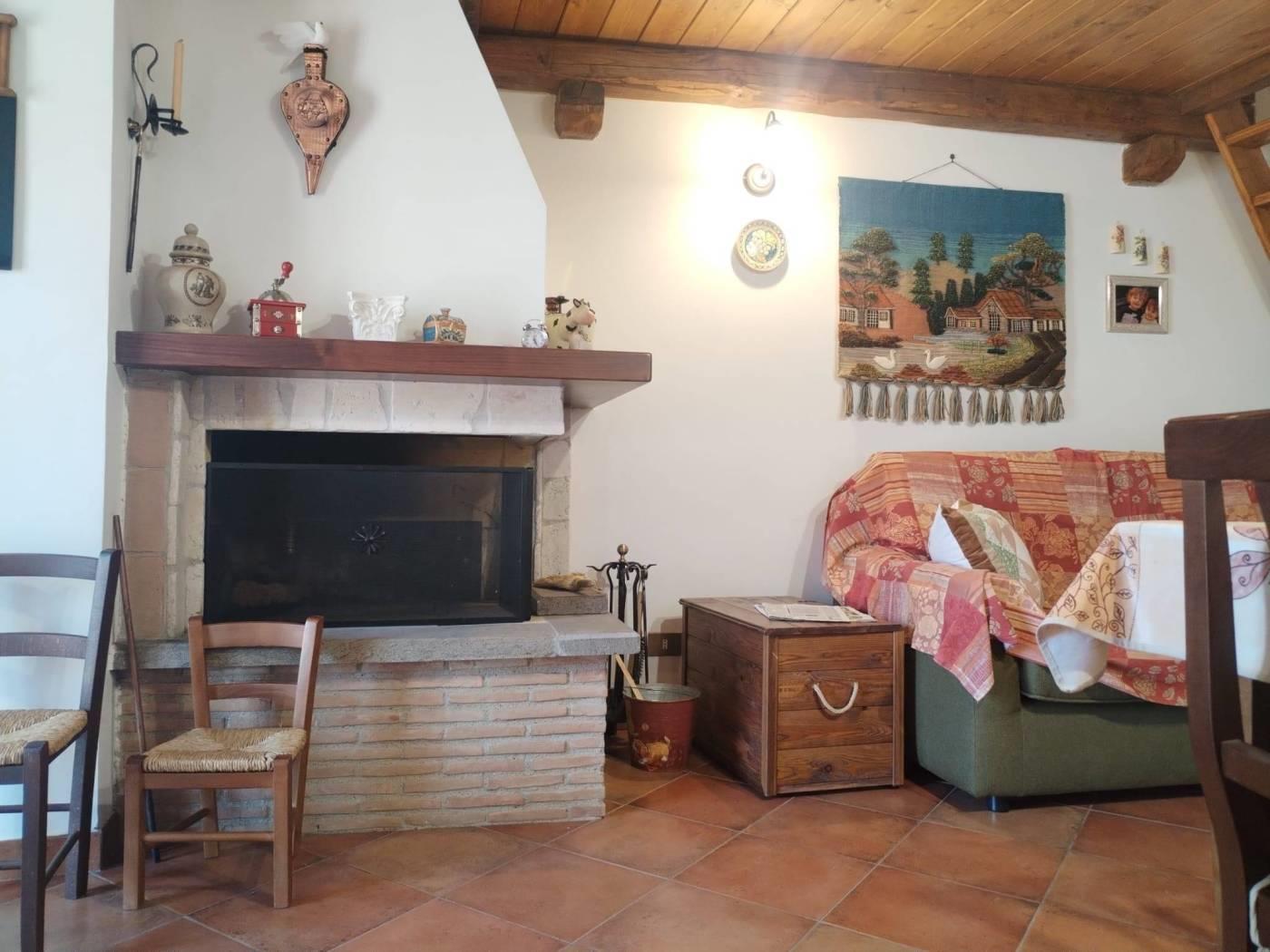 • Luminoso soggiorno con angolo cottura e camino
