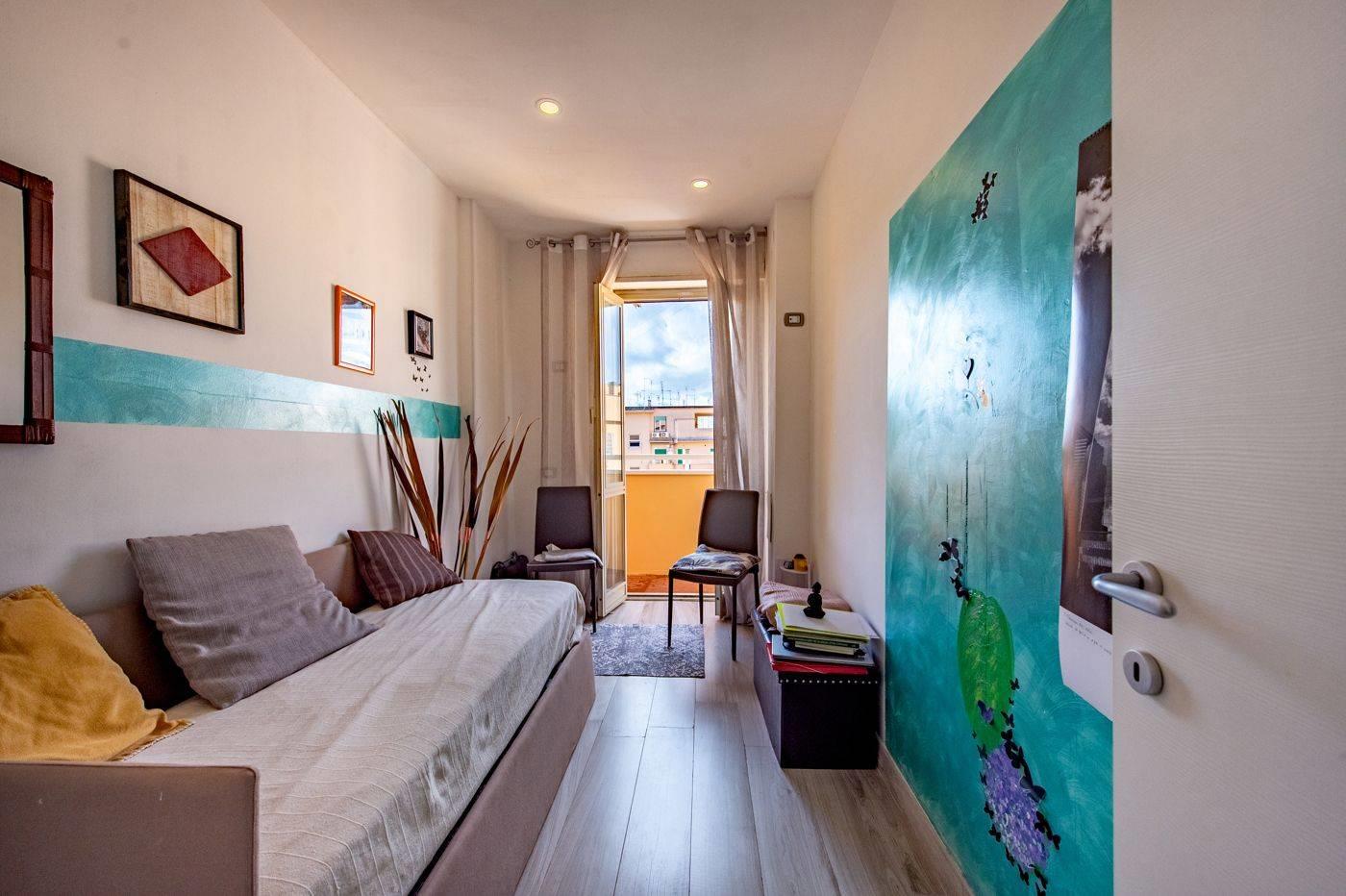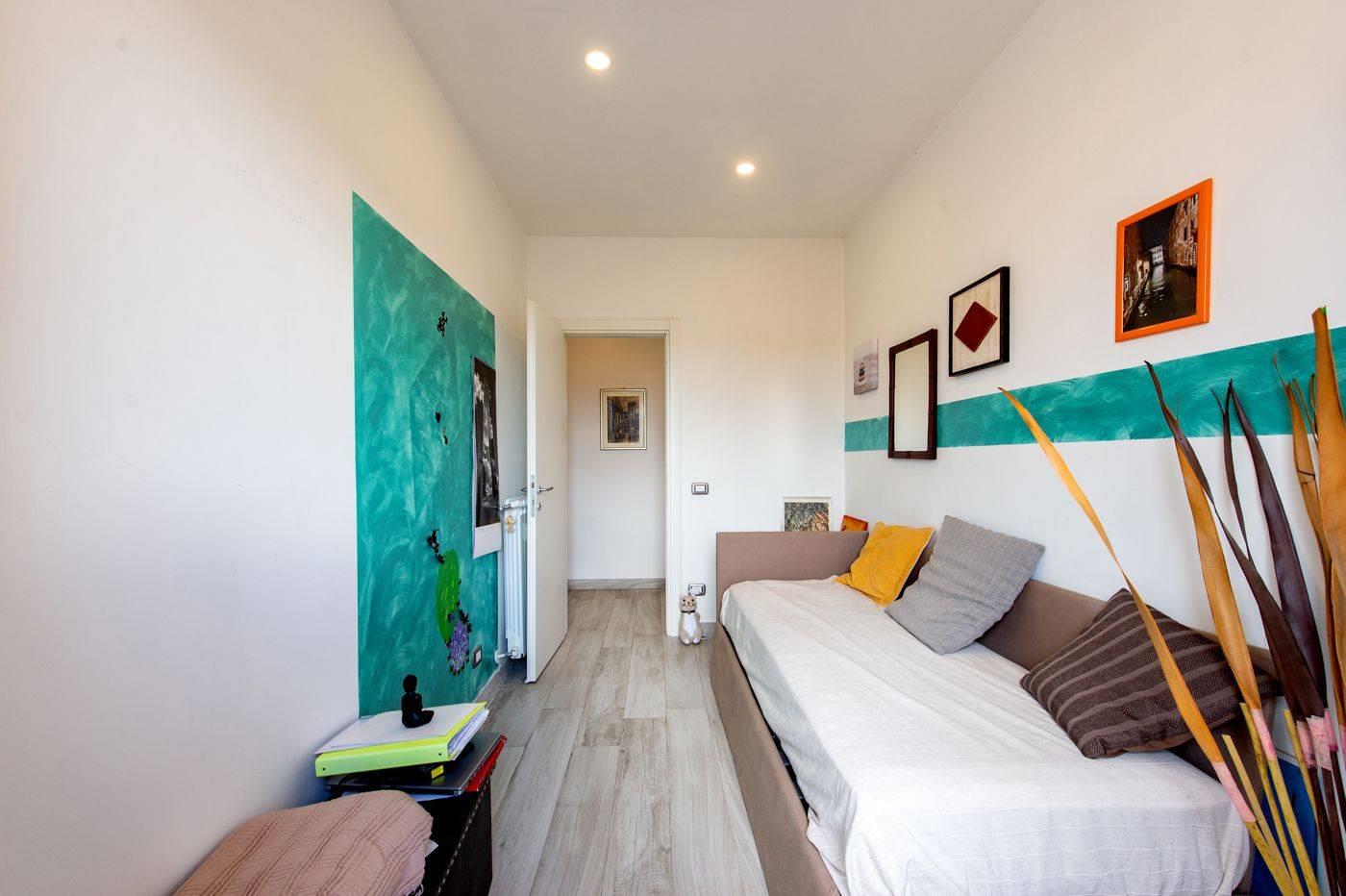 Il corridoio ci accompagna a seguire in una cameretta con affaccio su un balcone, un bagno padronale, un'altra camera da letto matrimoniale molto ampia con al suo interno un altro servizio ed una celata cabina armadio spaziosissima.