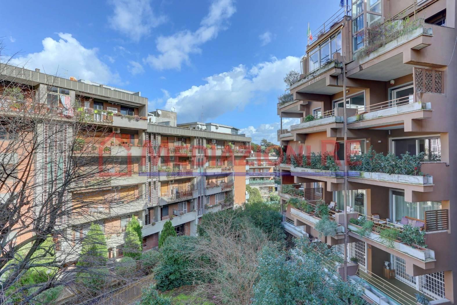 Trattasi di un complesso di eleganti palazzine in tinta, con servizio di portineria al mattino, edificate negli anni ’70, firmate dall’architetto Pesce, di soli cinque piani, oltre superattico, tra le più signorili in zona e con finiture di pregio (questa in particolare è in ottime condizioni) e con giardini e cortili esclusivi di accesso agli stabili, dotati di piante ornamentali ed alberi ad alto fusto. Tutti gli spazi condominiali, così come l’androne, le scale e i pianerottoli sono molto ampi e luminosi. Il piano di allocazione dell’appartamento è accessibile tramite due scale e due ascensori diversi.